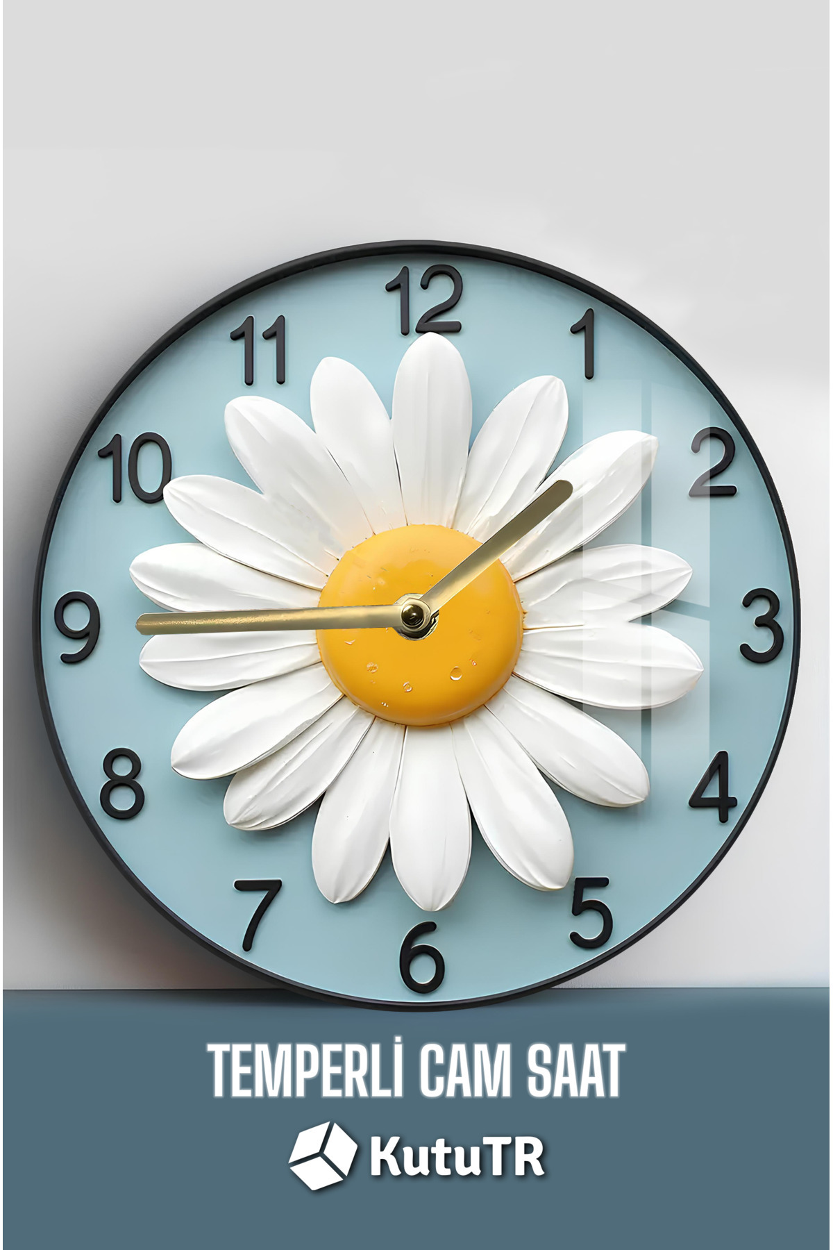 Papatya Desenli 3D Görünümlü Temperli Cam Saat – 33 cm CSDW275