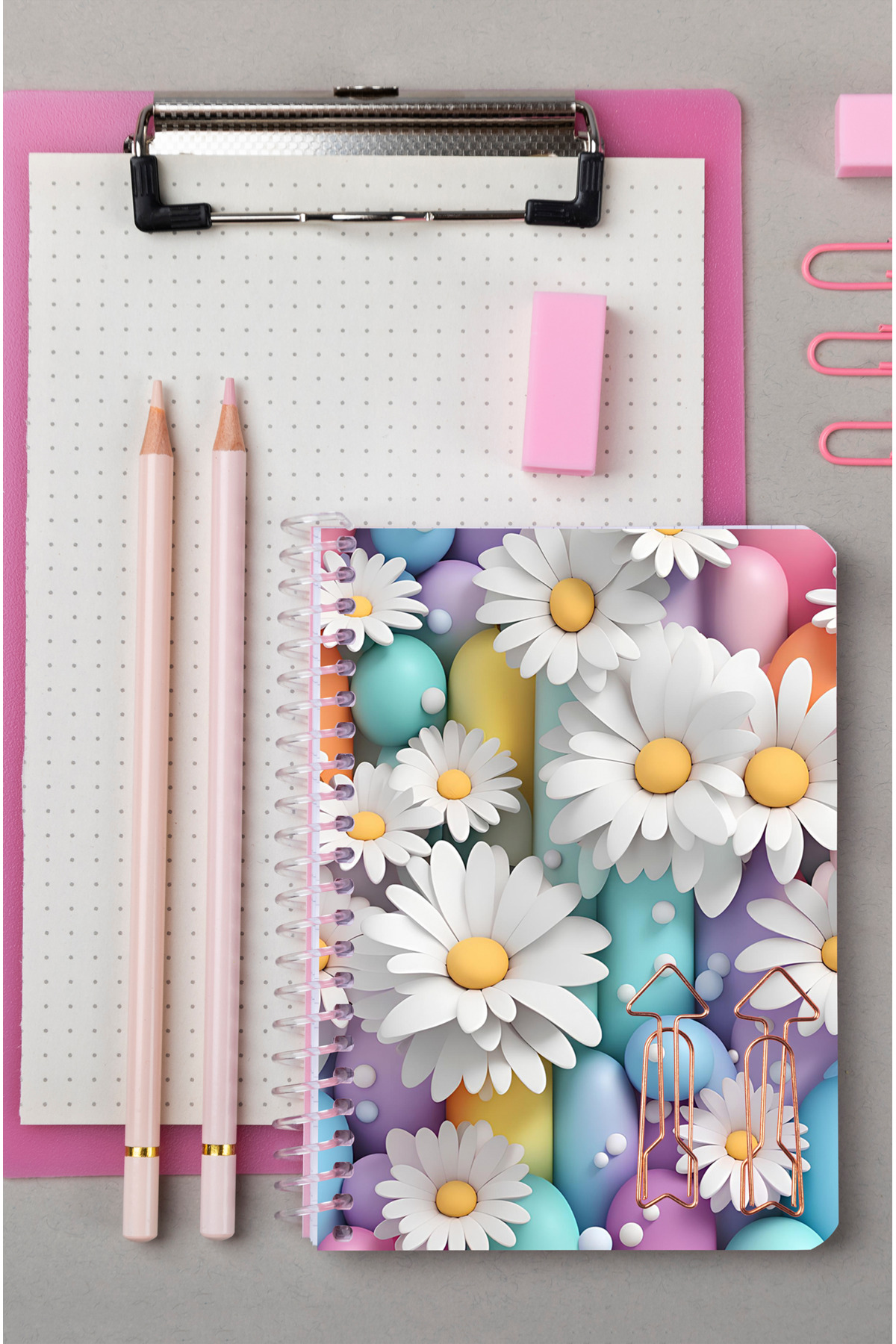 Papatya Desenli Ahşap Mdf Kapaklı 80 Yaprak Kareli 10x14 Vip Modelist Defter 80gr/m2 K-A604