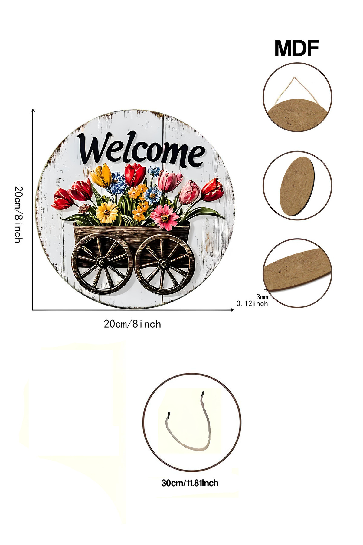 Papatya Desenli MDF "Welcome" Kapı Panosu – 20 cm 🌿 Ahşap Görünümlü Dekor KS004
