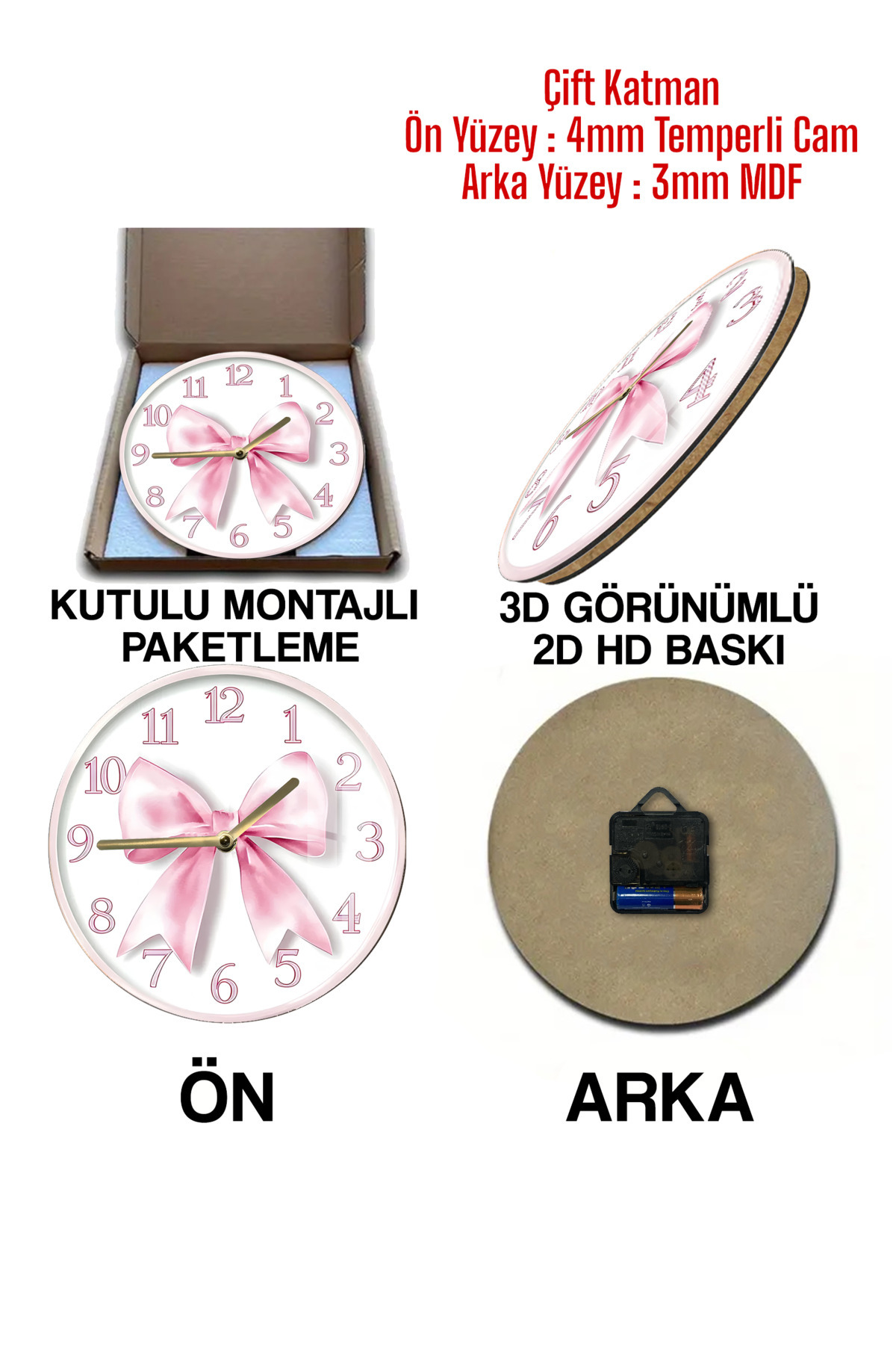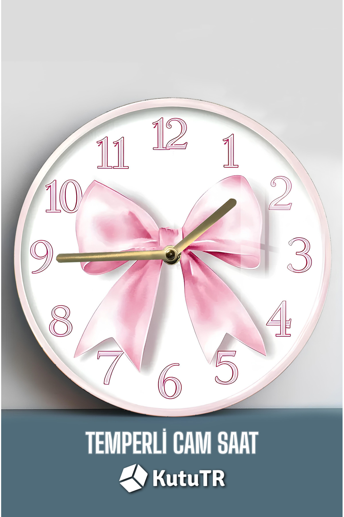 Pembe Fiyonk Temalı Temperli Cam Saat – 33x33 cm CSDW309