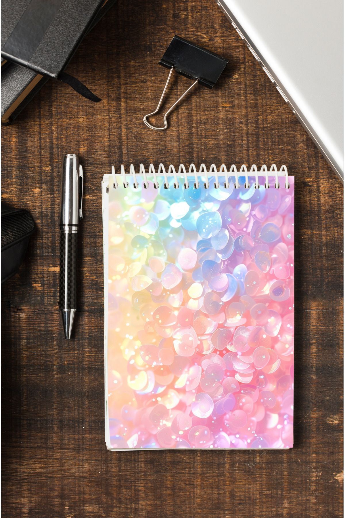 Pembe Taşlar Ahşap Mdf Kapaklı 80 Yaprak Çizgili 14x21 Vip Bloknot 70gr/m2 Ç-OB19