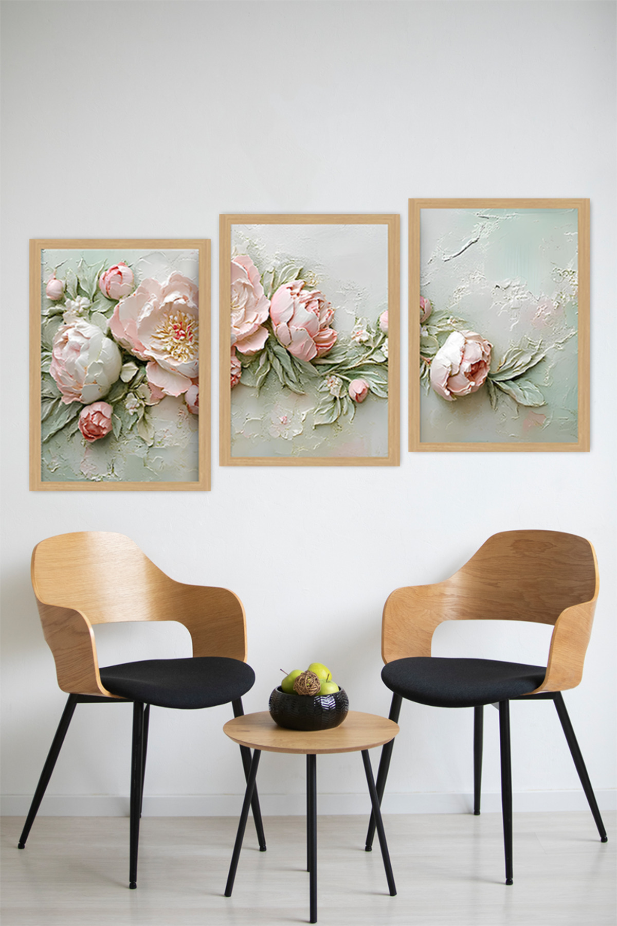 🌸 Pudra Çiçek Dokulu Duvar Tablo Seti -Çerçevesiz MDF UV Baskı CRVS1057