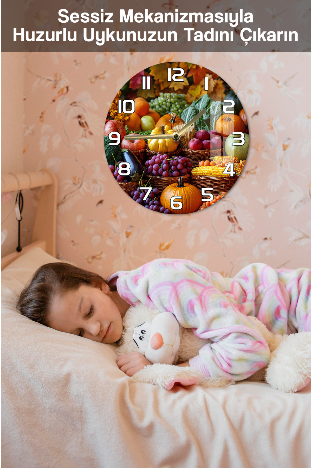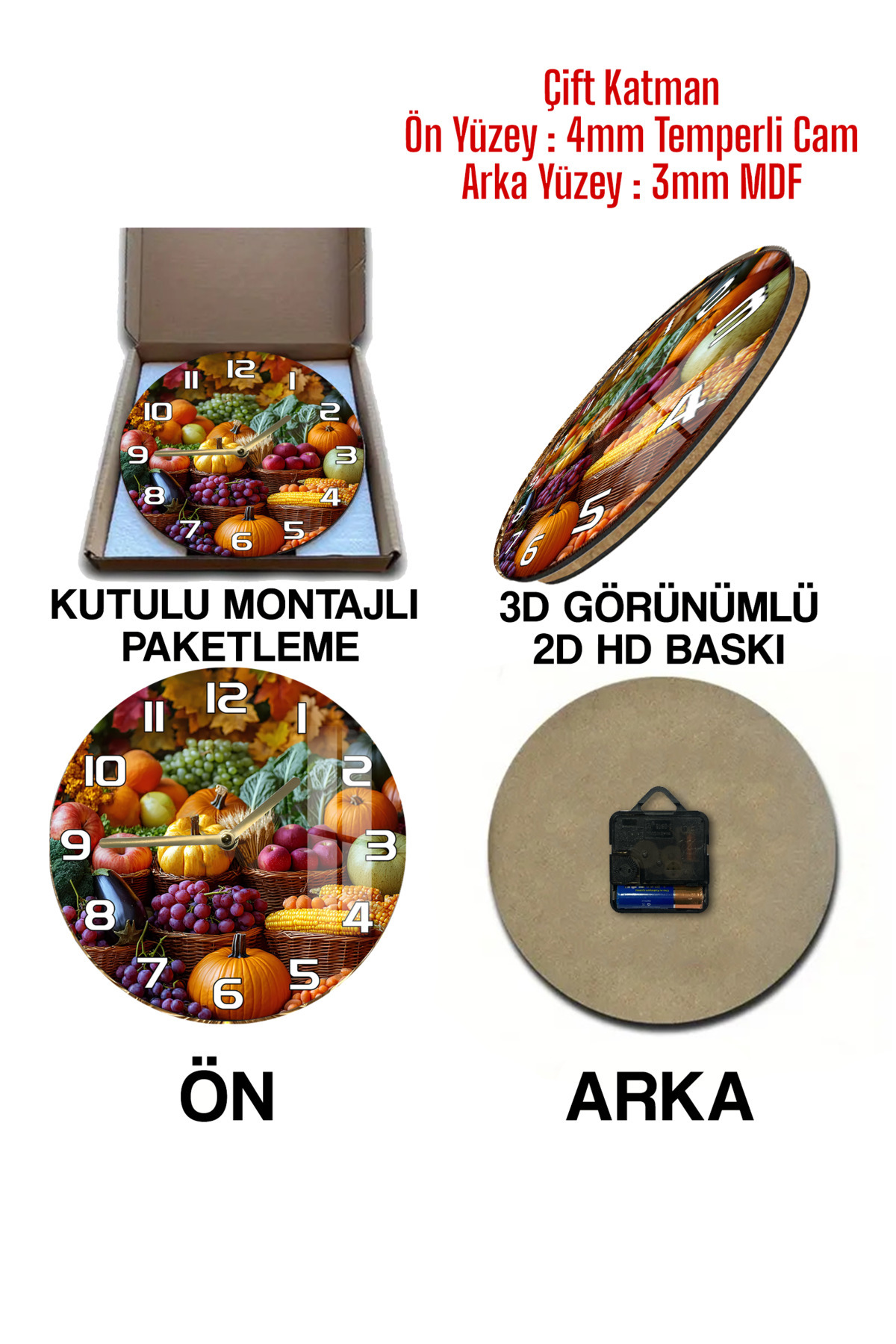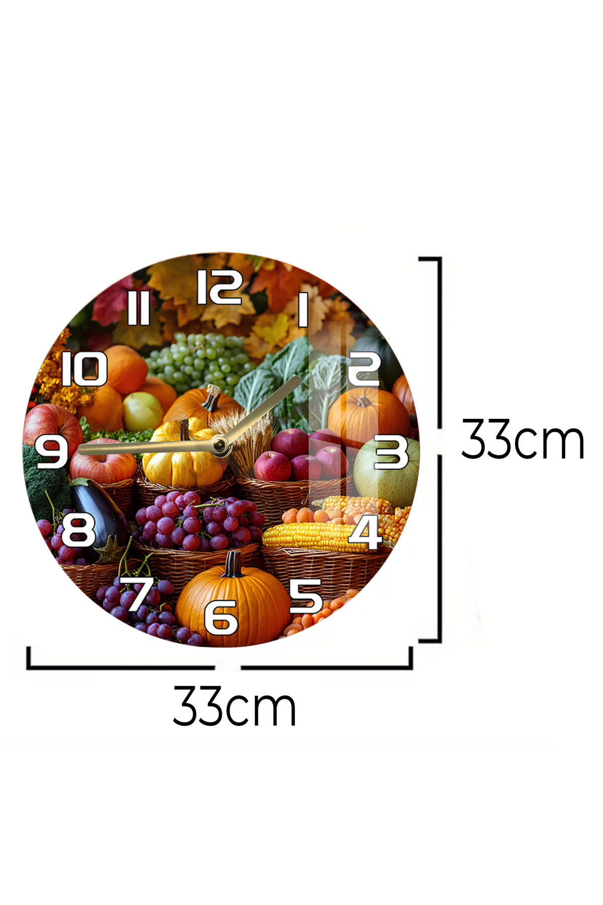Renkli Hasat Temalı 3D Görünümlü Temperli Cam Saat – 33 cm CSDW353