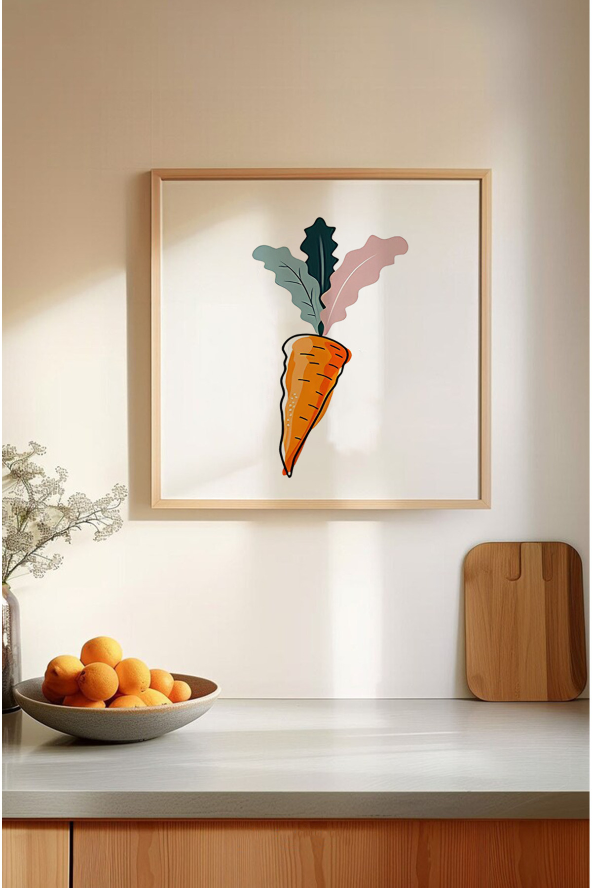 🥕 Renkli Sebze Temalı 3’lü Tablo Seti –Havuç, Pancar, Mısır Desenli Ahşap Çerçeveli UV Baskı KR4057