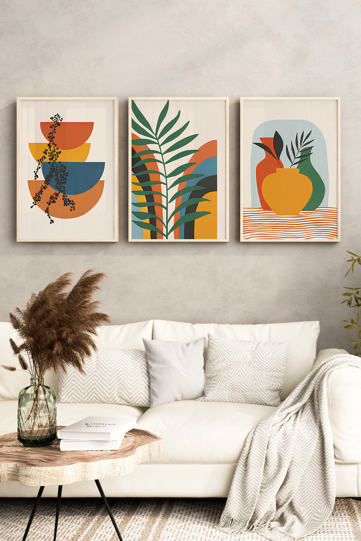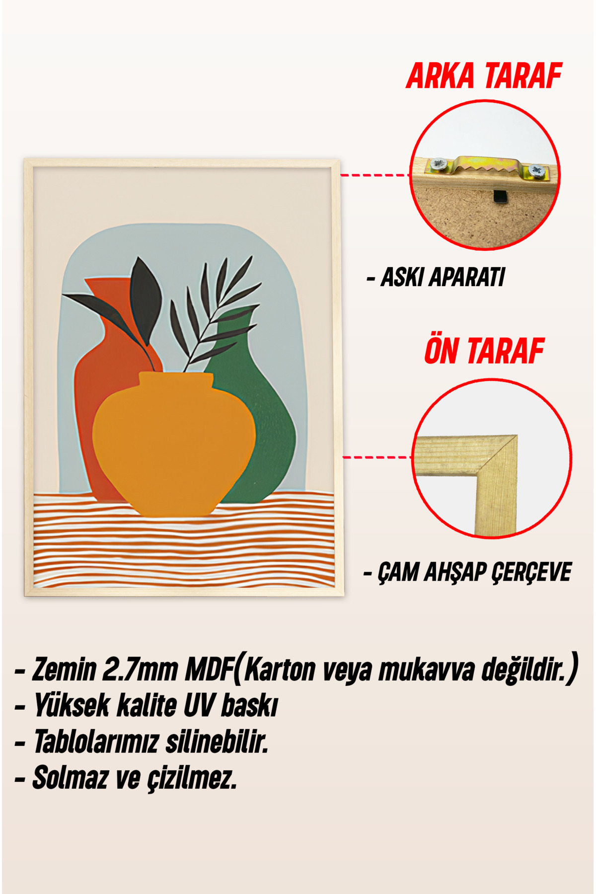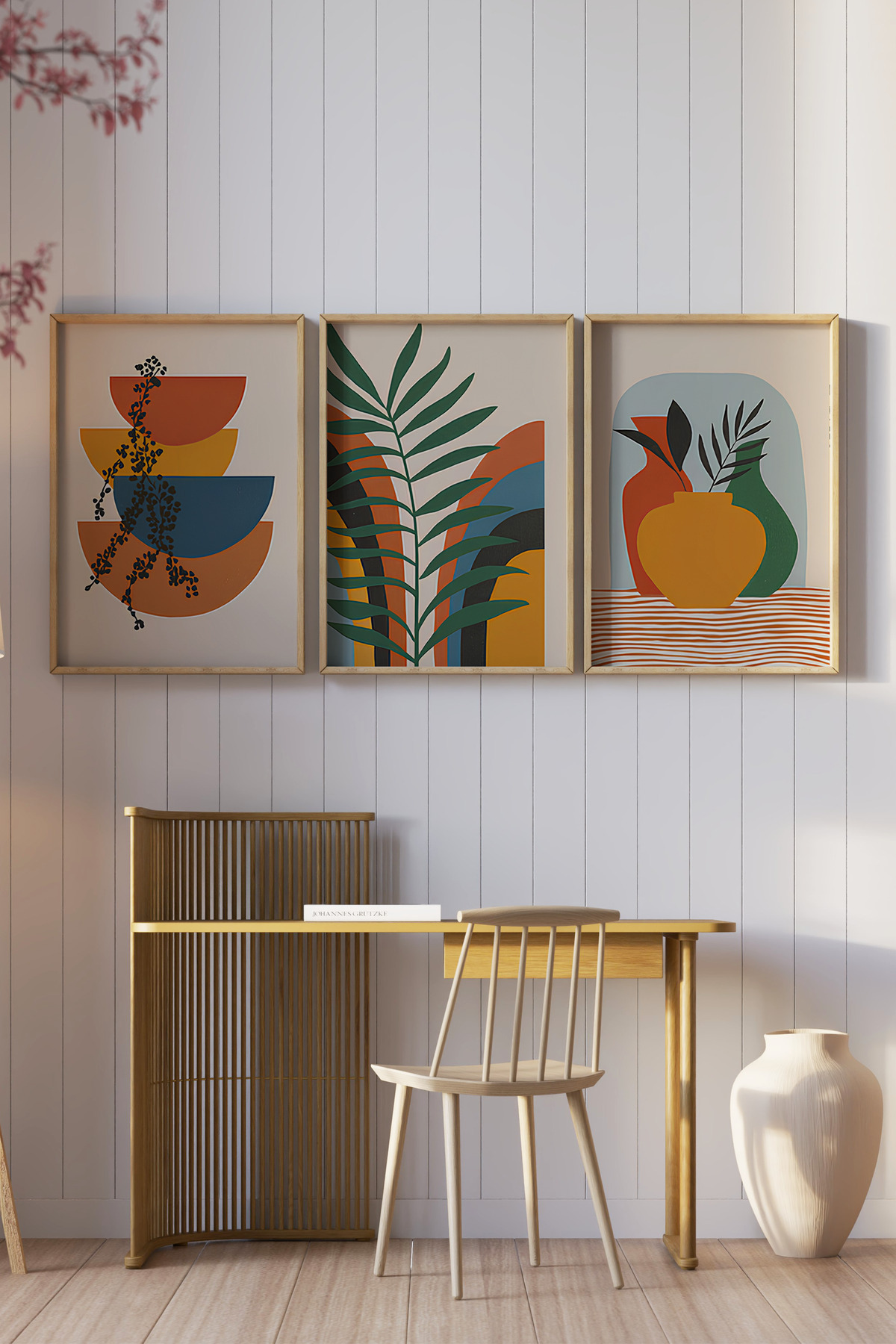 🌿 Renkli Vazo ve Bitki Kompozisyonlu 3’lü Ahşap Çerçeveli Tablo Seti 🌿 CRV1178