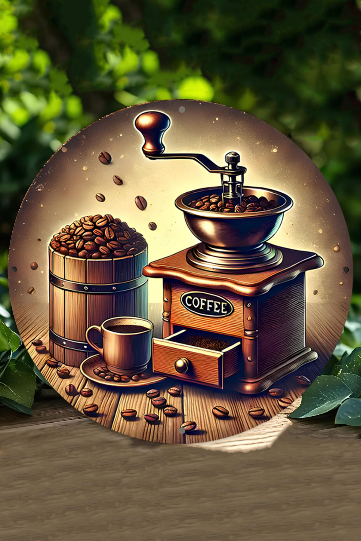 Retro Kahve Temalı Ahşap Duvar Süsü – 20x20 cm DT084