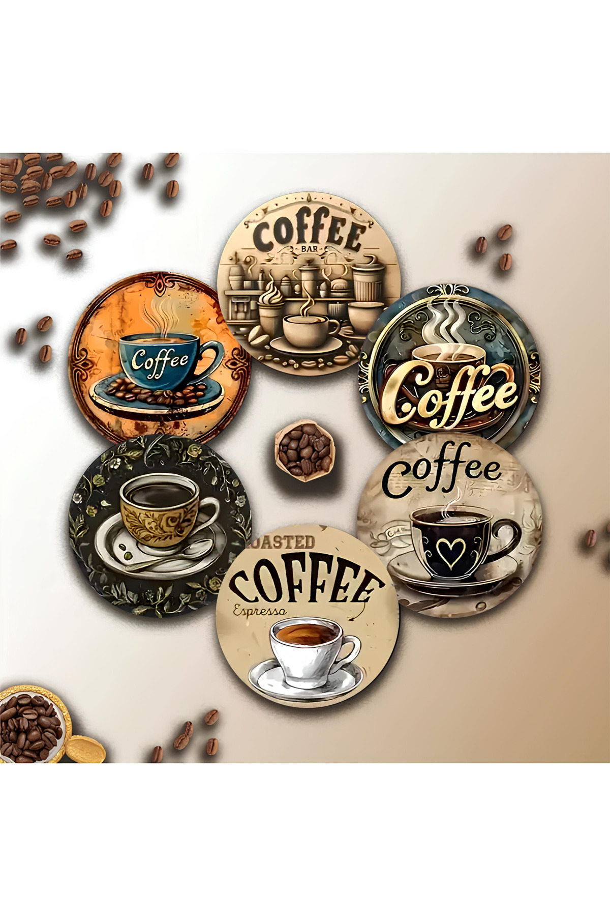 ☕ Retro Tarzda 6'lı Kahve Temalı Bardak Altlığı Seti – MDF | 10 cm BRD-028