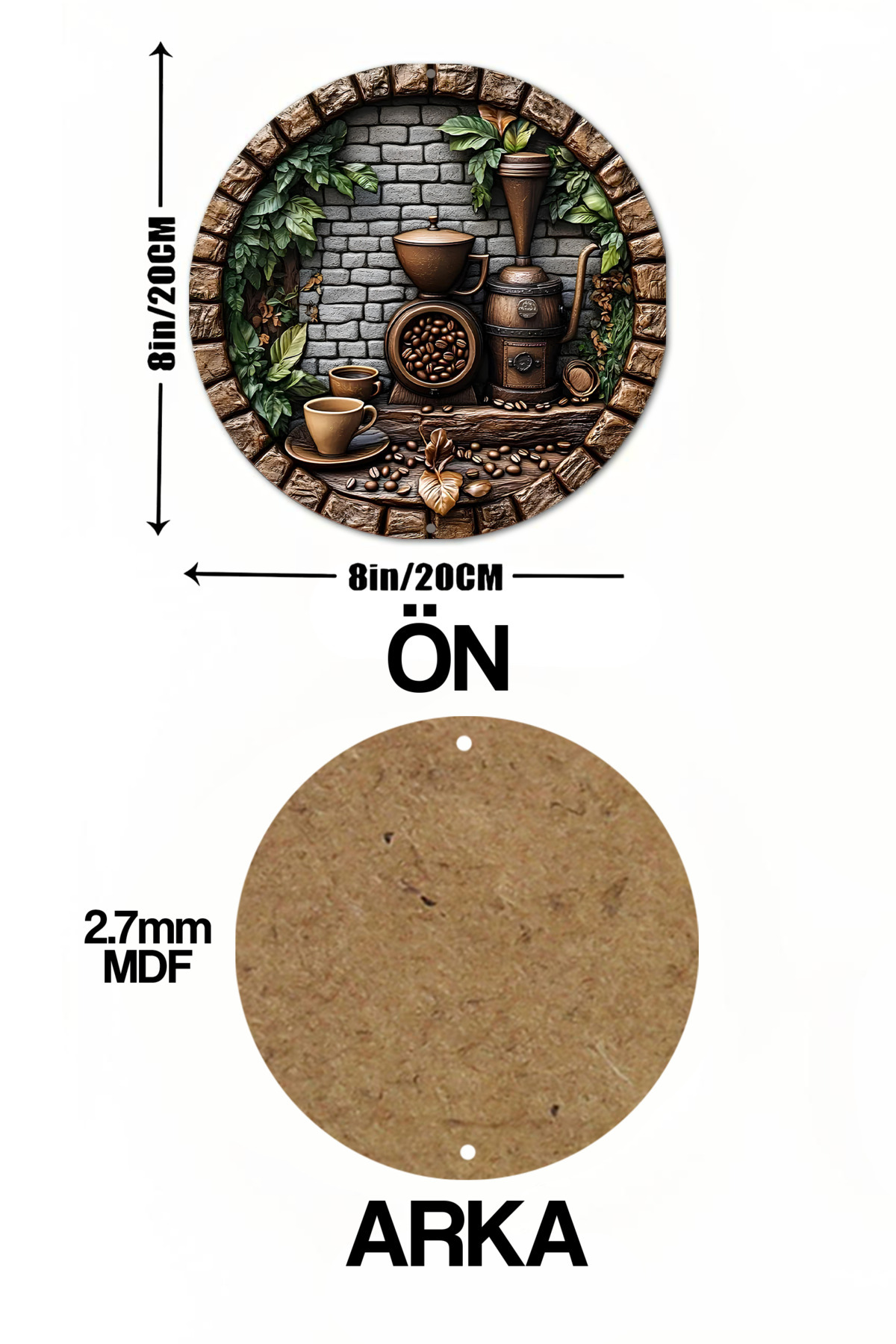 ☕ Rustik Kahve Köşesi – 3D Görünümlü MDF Duvar Dekoru (20 cm) DT025