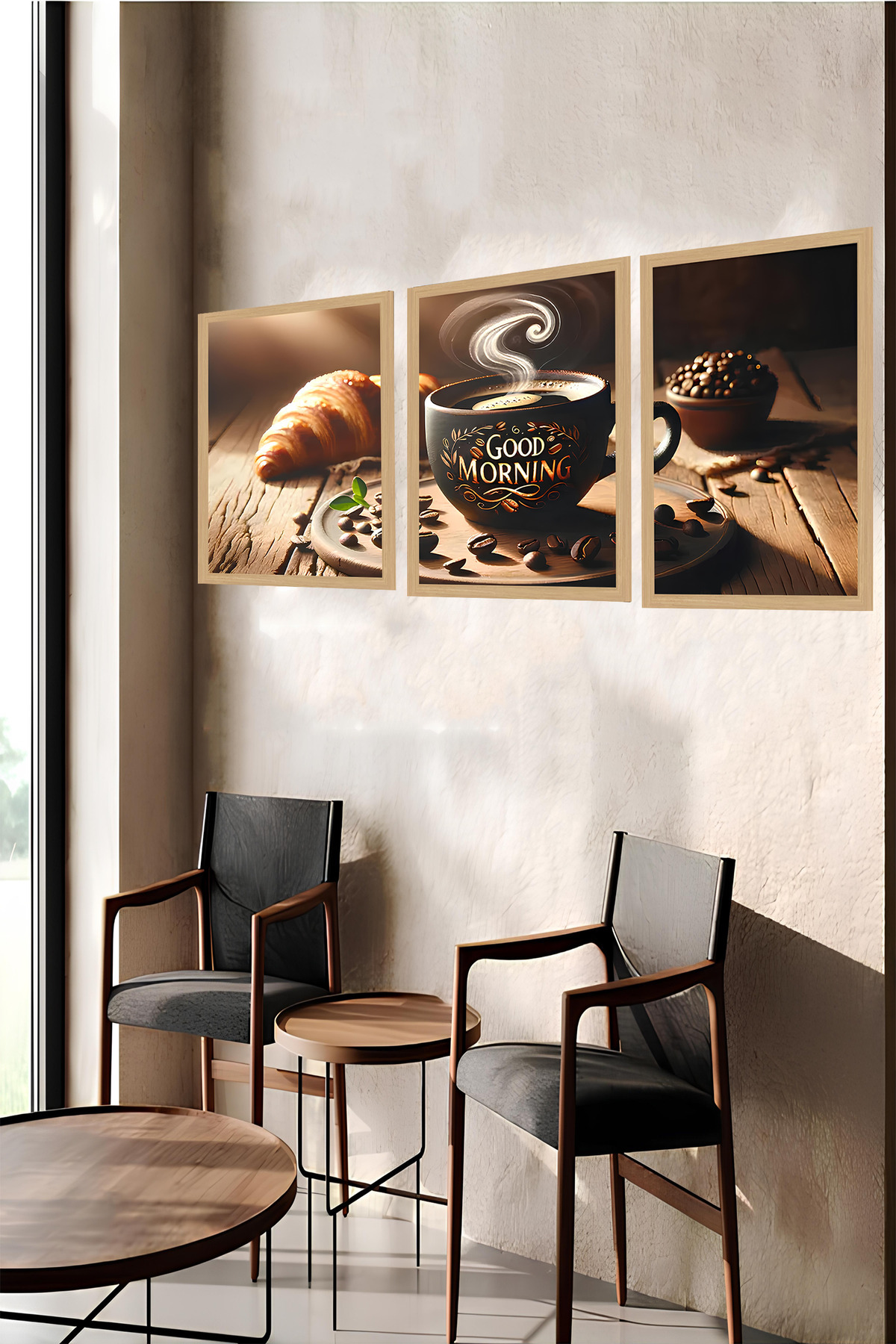 ☕ Rustik Sabah – Good Morning Yazılı 3’lü MDF UV Baskılı Tablo Seti (3 Ebat Seçeneği) CRVS1023