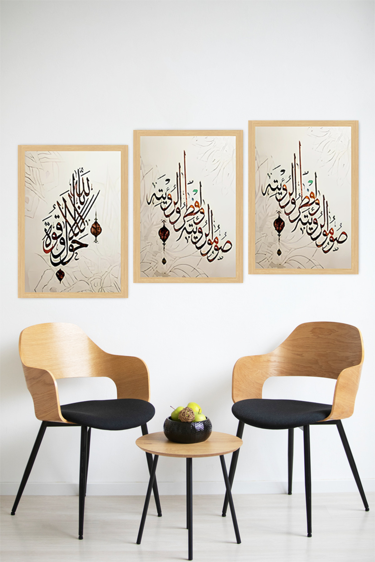 🖼️ Sabır - Şükür - Tevekkül Yazılı Modern Çerçeve Görünümlü 3’lü Tablo Seti🌟 CRVS1099