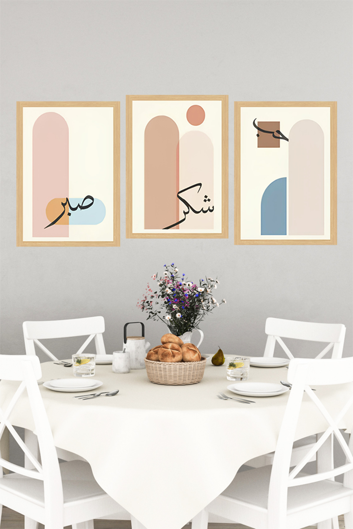 🌿 Sabır – Şükür – Tevekkül Yazılı Modern Tablo Seti 🌿 CRVS1098