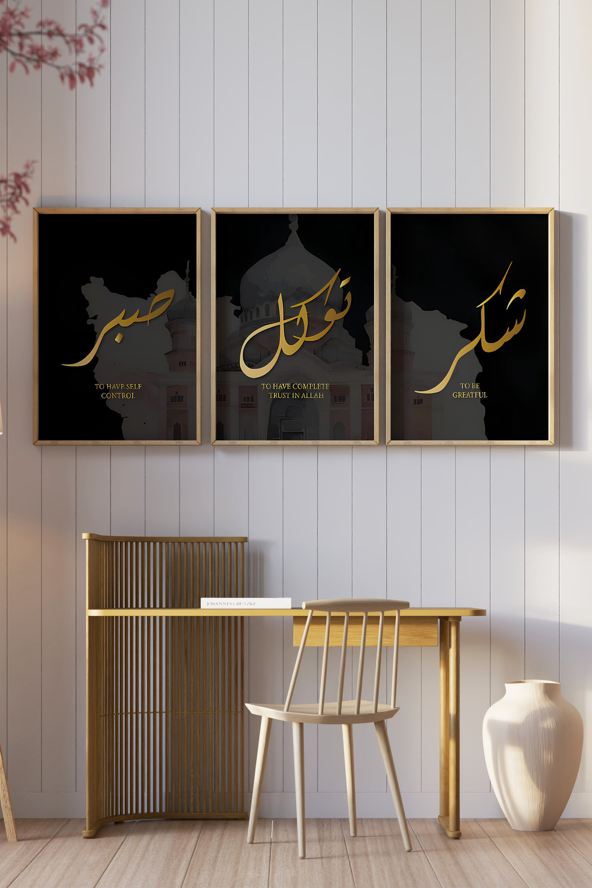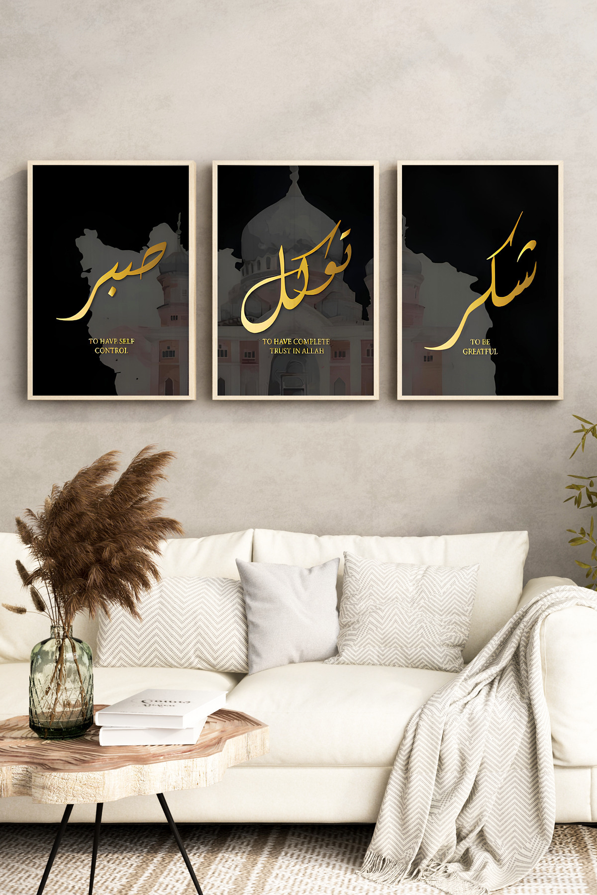 ✨ Sabır • Tevekkül • Şükür 3’lü Çerçeveli Tablo Seti (23x32, 32x42, 42x62 cm) ✨🌸 CRV1213