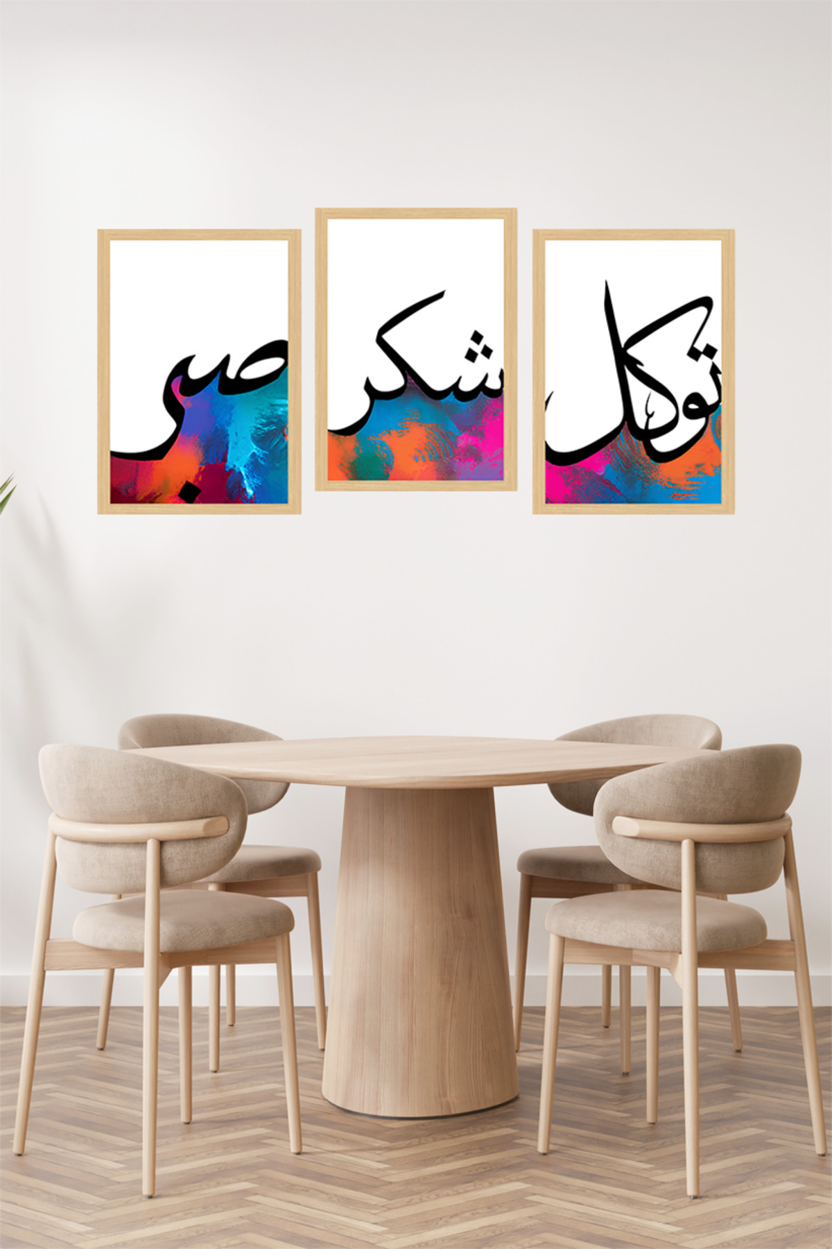 📜 Sabr, Şükür ve Tevekkül Yazılı Çerçeve Görünümlü 3’lü Tablo Seti 🌿 CRVS1238