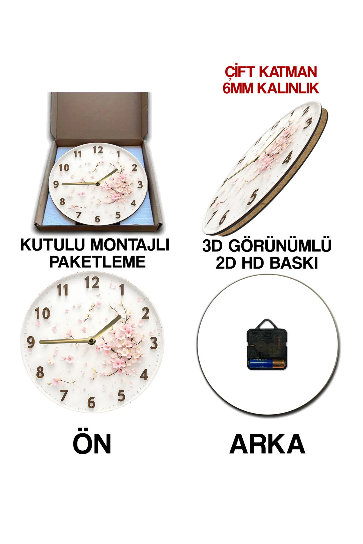 🩷🌸 Sakura Esintisi – 3D Görünümlü Çiçekli Duvar Saati 🕒✨ sdw268