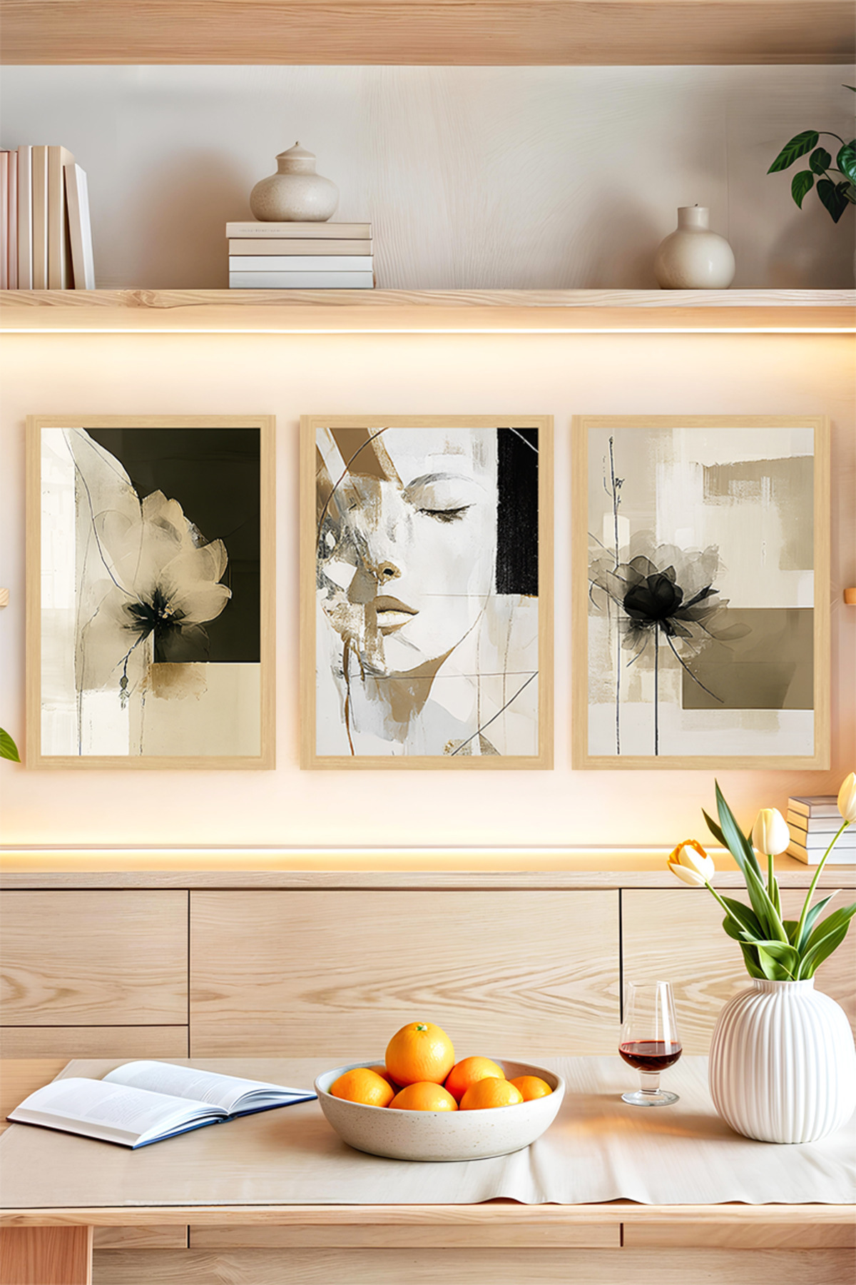 🎨 Sanatsal Dokunuşlarla Evinizi Taçlandırın – Soyut Yüz ve Çiçek Temalı 3’lü Tablo Seti🌟 CRVS1167