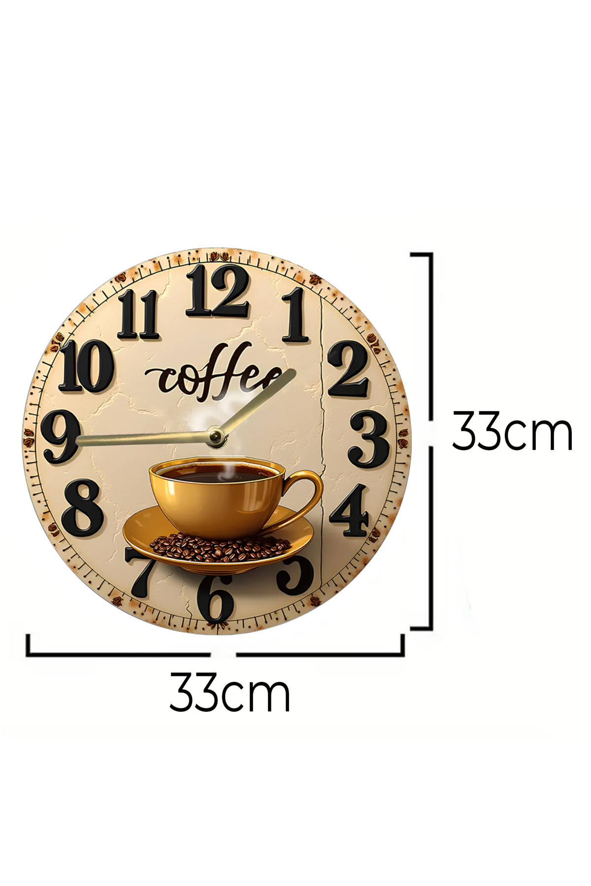 Sessiz Yuvarlak Ahşap Duvar Saati, Kuvars Coffe Desen 2d Sdw028