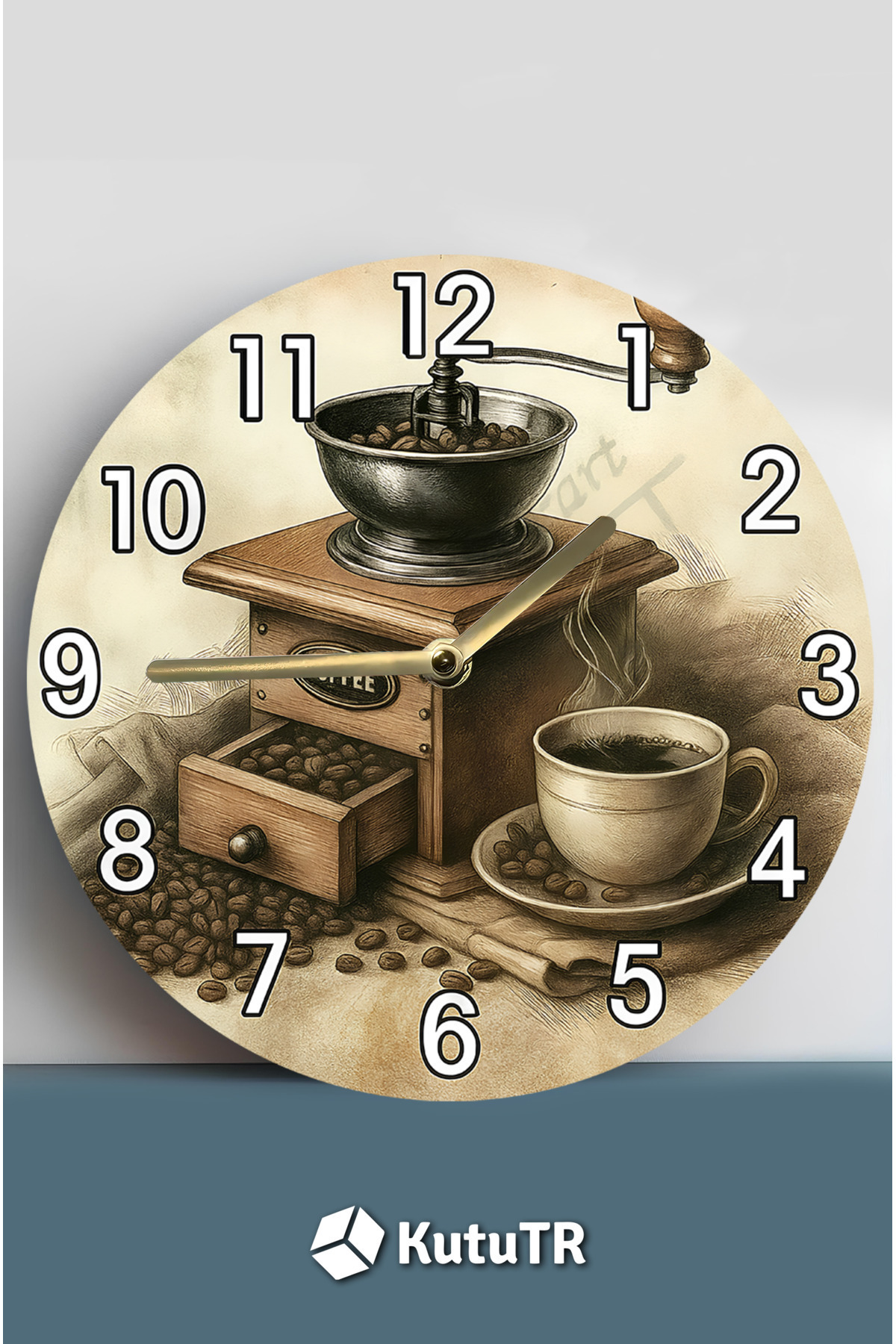Sessiz Yuvarlak Ahşap Duvar Saati, Kuvars Coffe Desen sdw2018 coffe , cafe