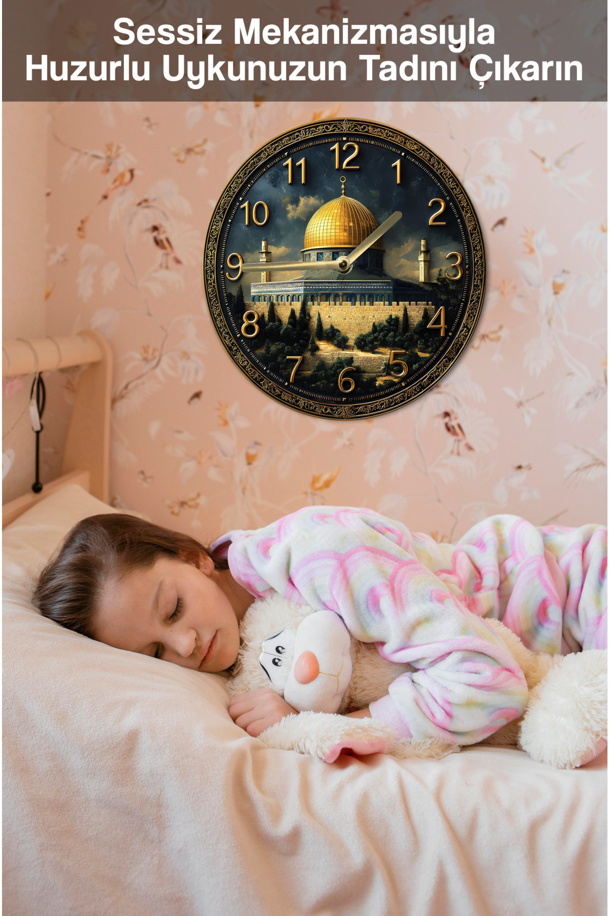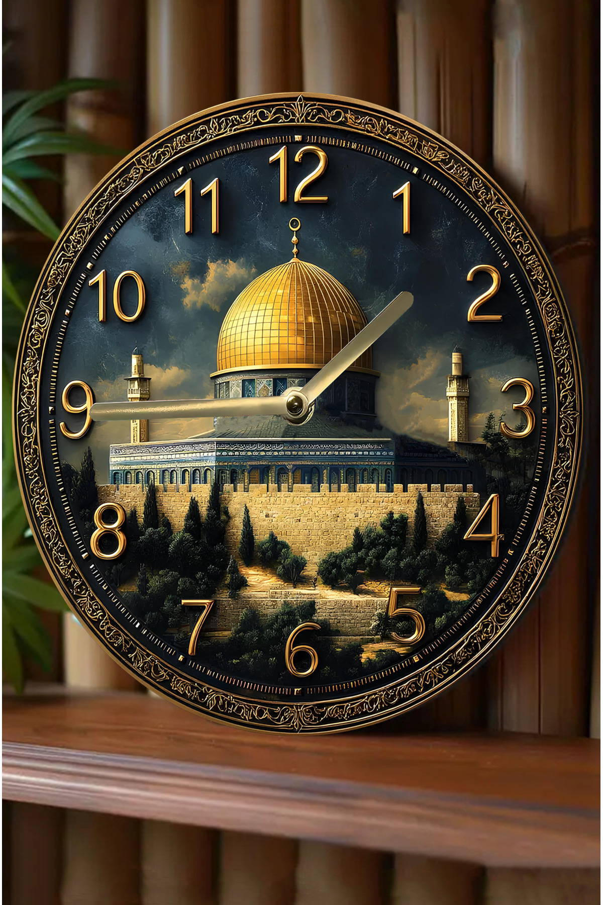 Sessiz Yuvarlak Ahşap Duvar Saati, Kuvars Dini Desen 2d Sdw030