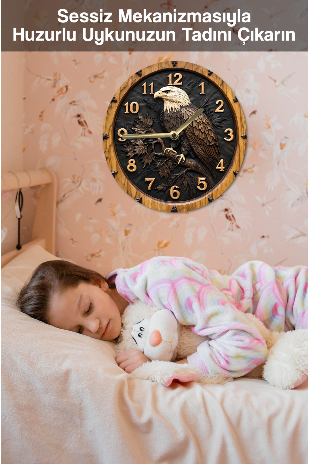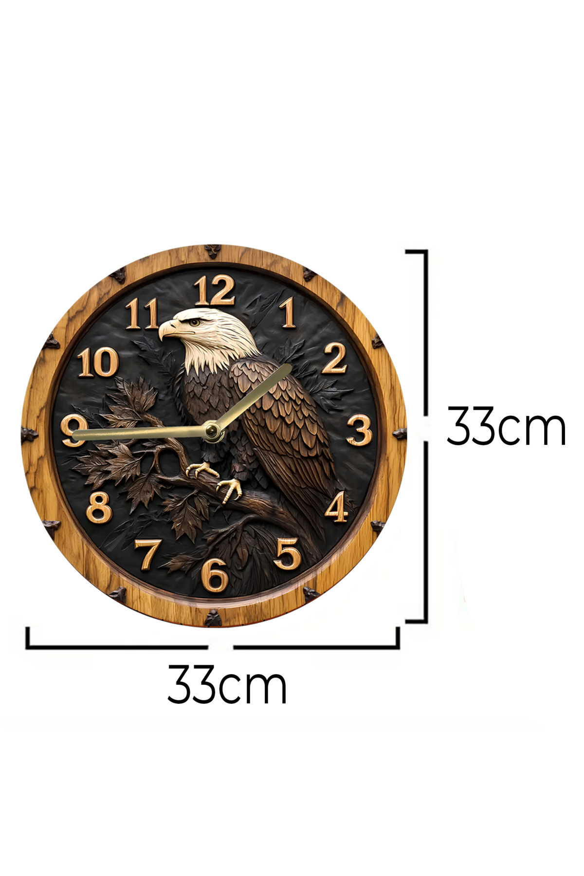 Sessiz Yuvarlak Ahşap Duvar Saati, Kuvars Hareketli 2d Kartal Desen Sdw024