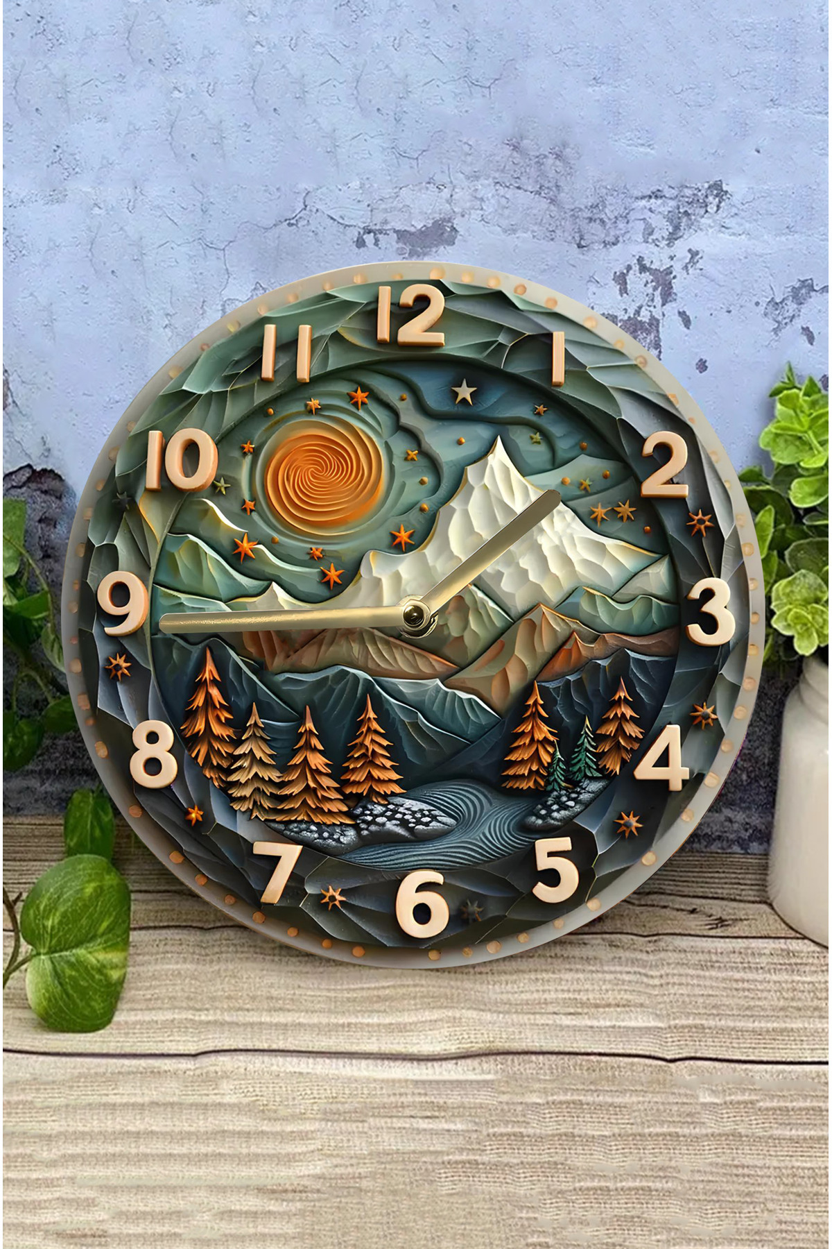 Ahşap Uv Baski 3D Görünümlü Saatler