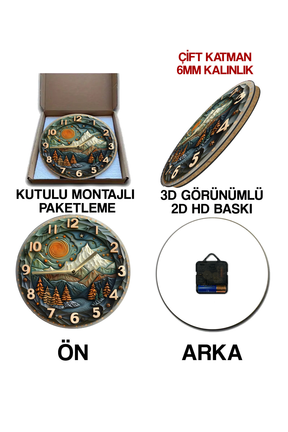 Ahşap Uv Baski 3D Görünümlü Saatler