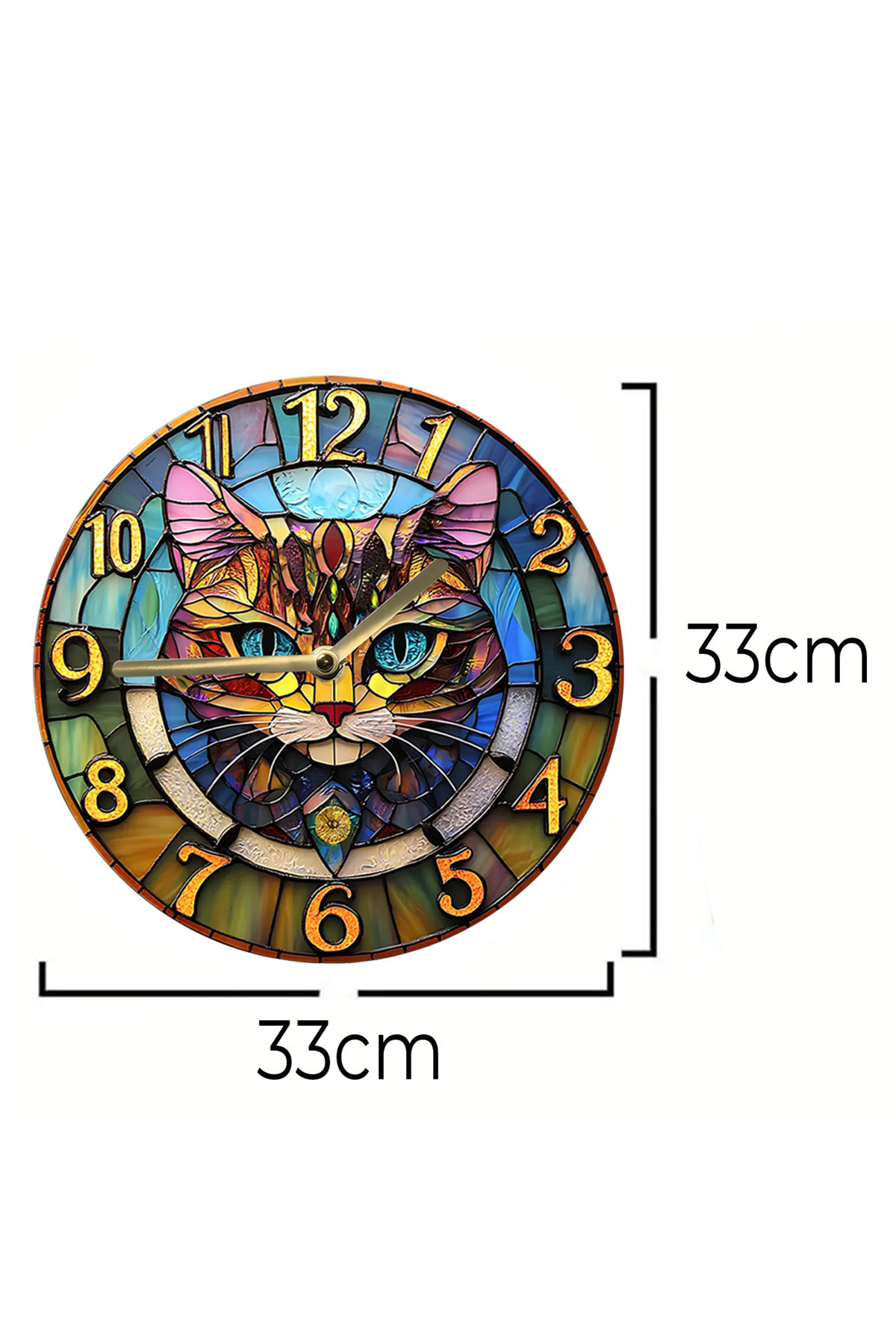 Sessiz Yuvarlak Ahşap Duvar Saati, Kuvars Hareketli 2d Kedi Desen Sdw021