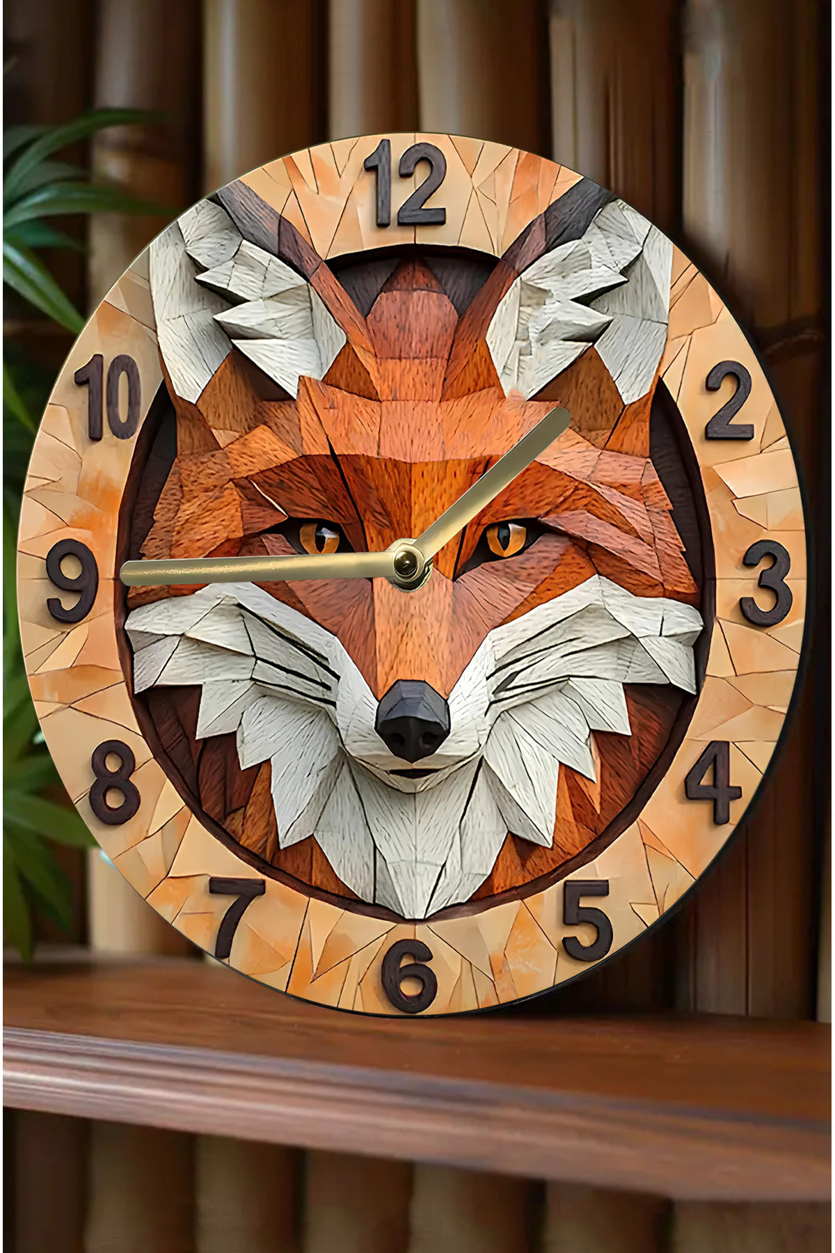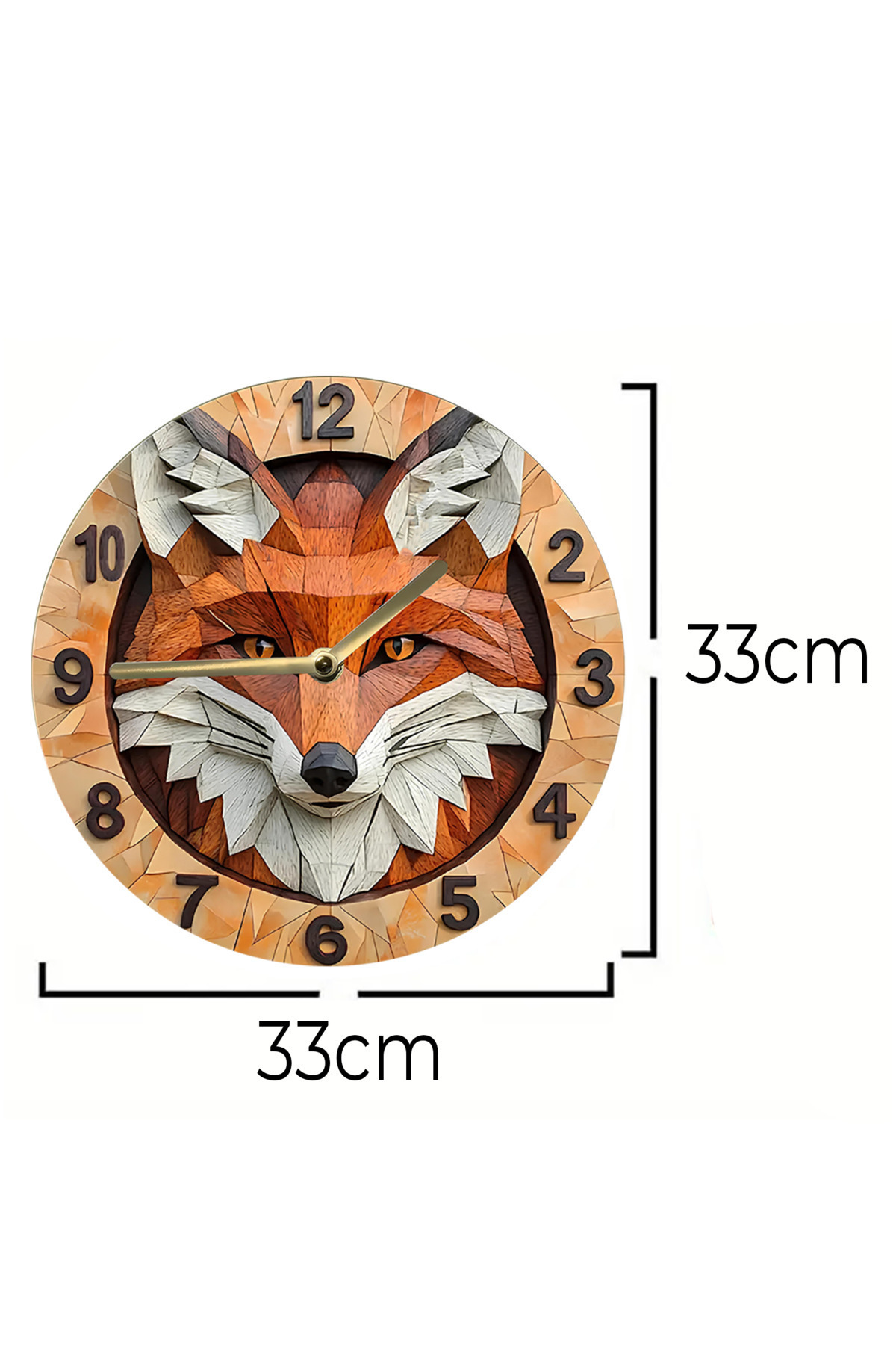 Sessiz Yuvarlak Ahşap Duvar Saati, Kuvars Hareketli 2d Tilki Desen Sdw022