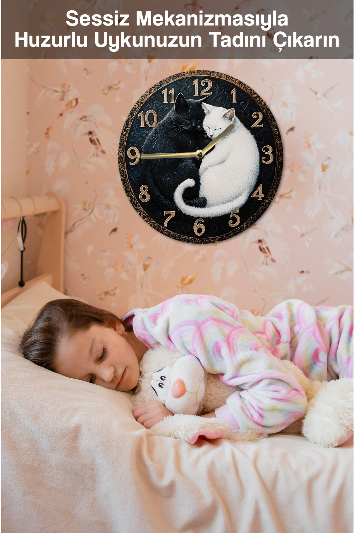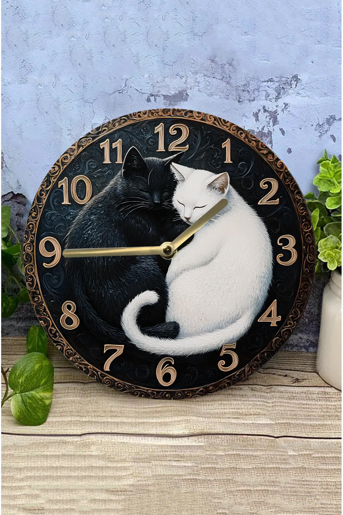 Sessiz Yuvarlak Ahşap Duvar Saati, Kuvars Hareketli 3d Görünümlü 2d Saat Kedi Desen Sdw033