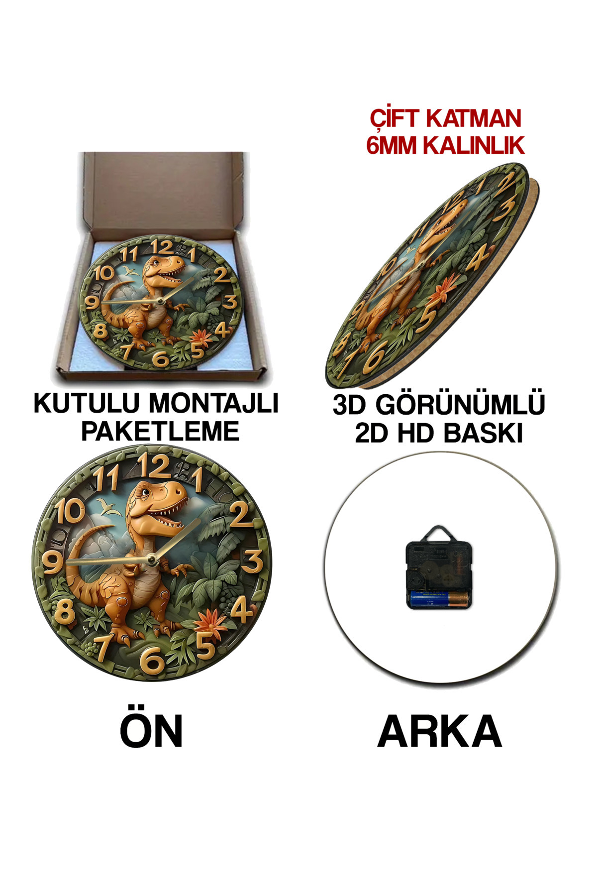 Ahşap Uv Baski 3D Görünümlü Saatler