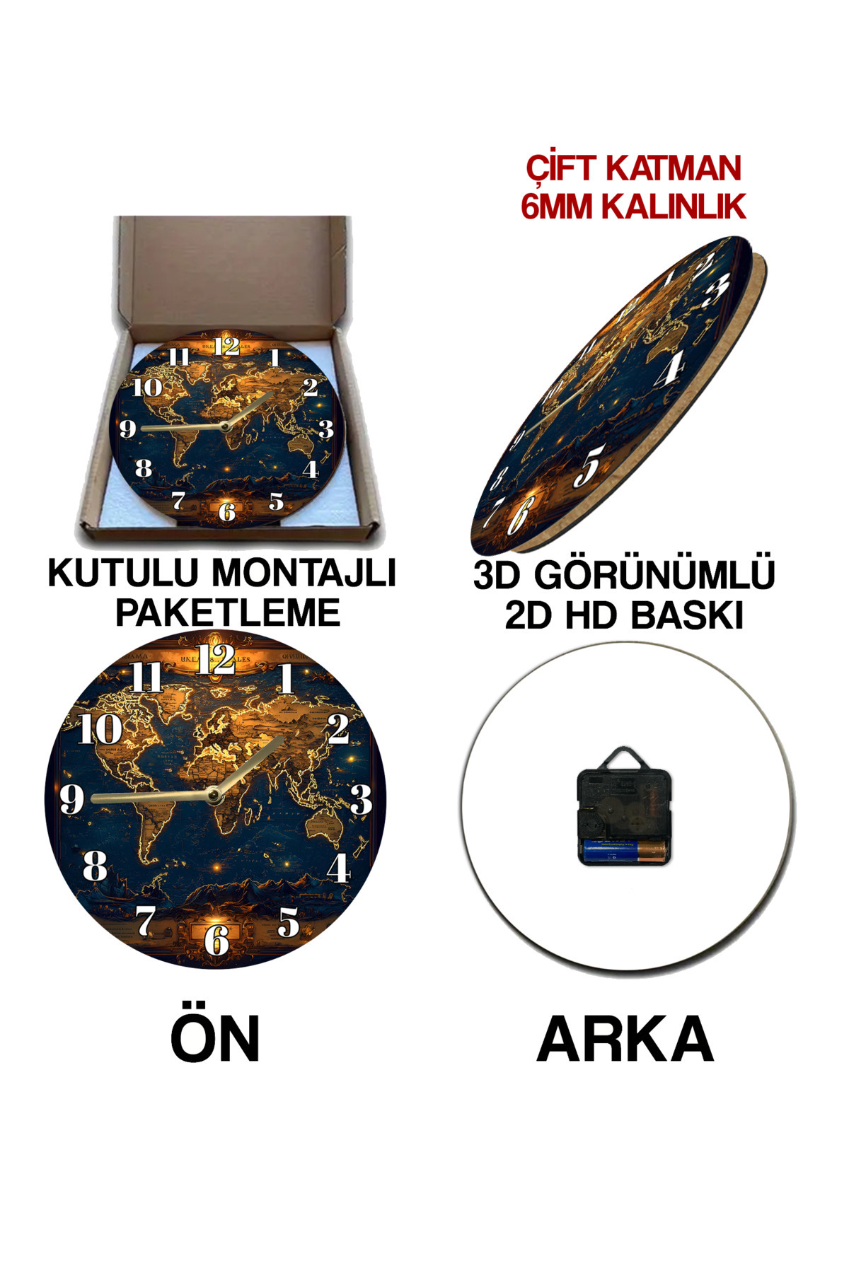 Ahşap Uv Baski 3D Görünümlü Saatler
