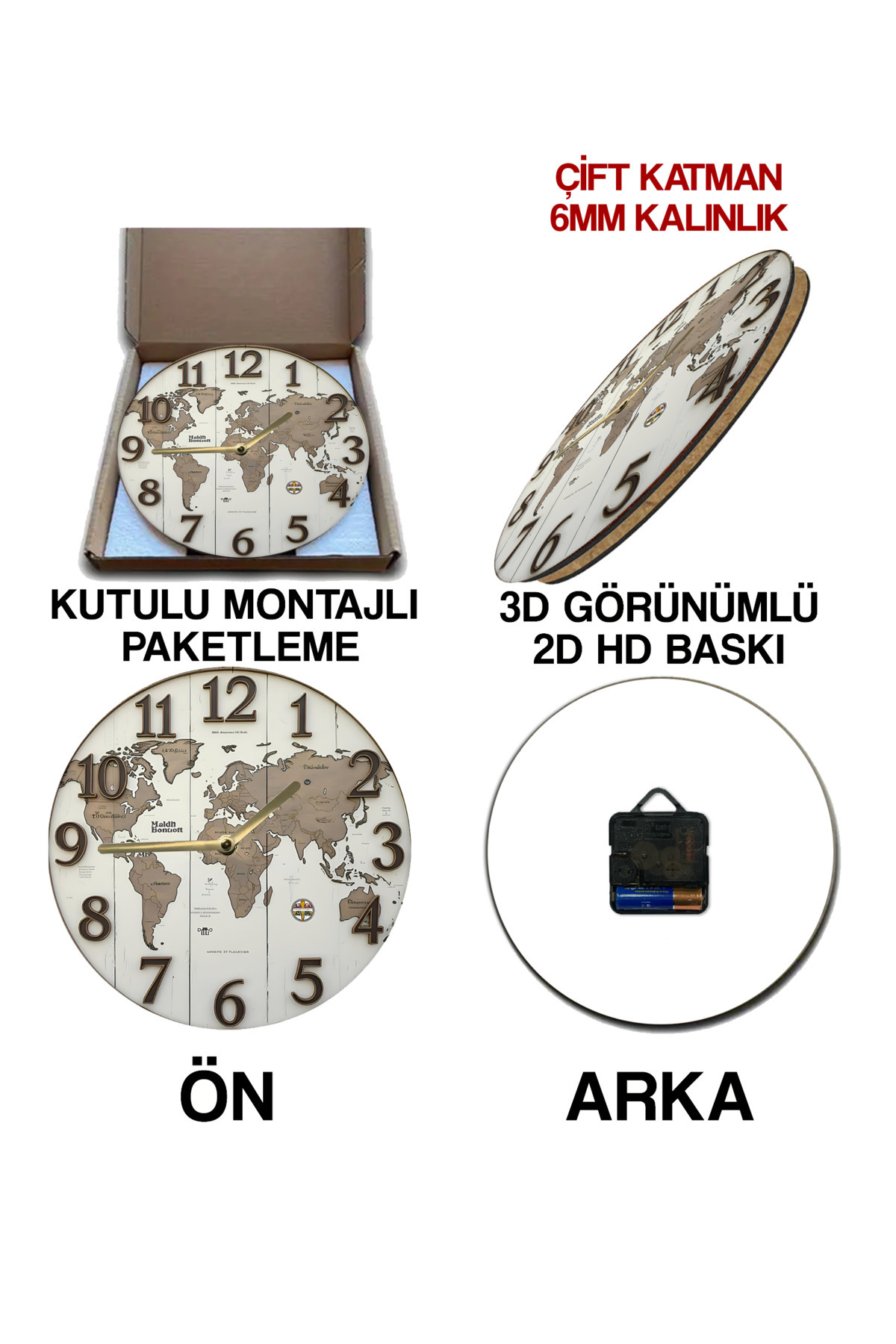 Ahşap Uv Baski 3D Görünümlü Saatler