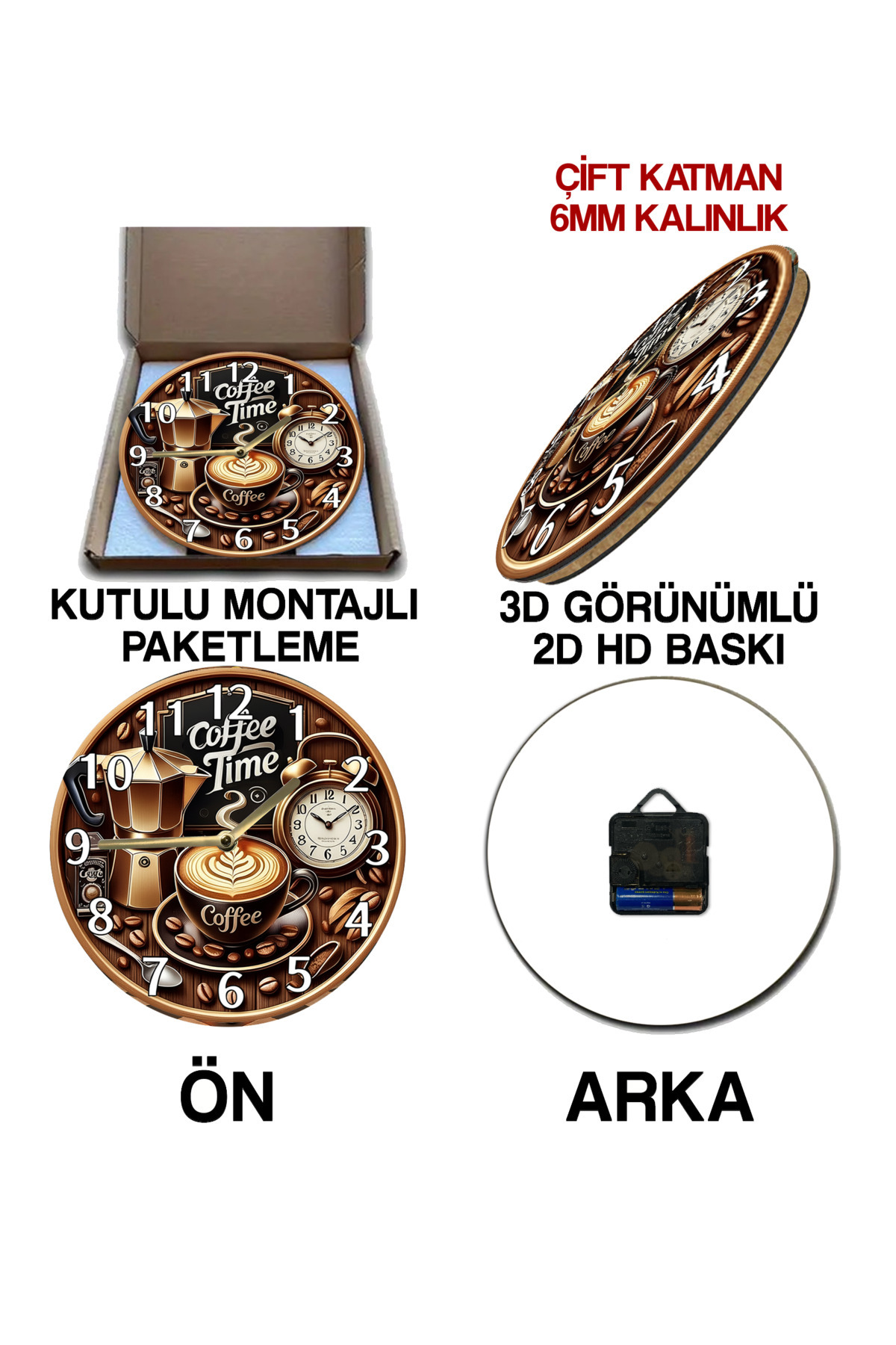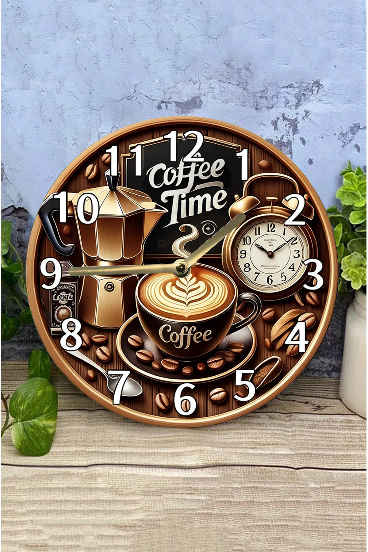 Sessiz Yuvarlak Ahşap Duvar Saati, Kuvars Hareketli 3d Görünümlü 2d Saat Sdw137 Coffee