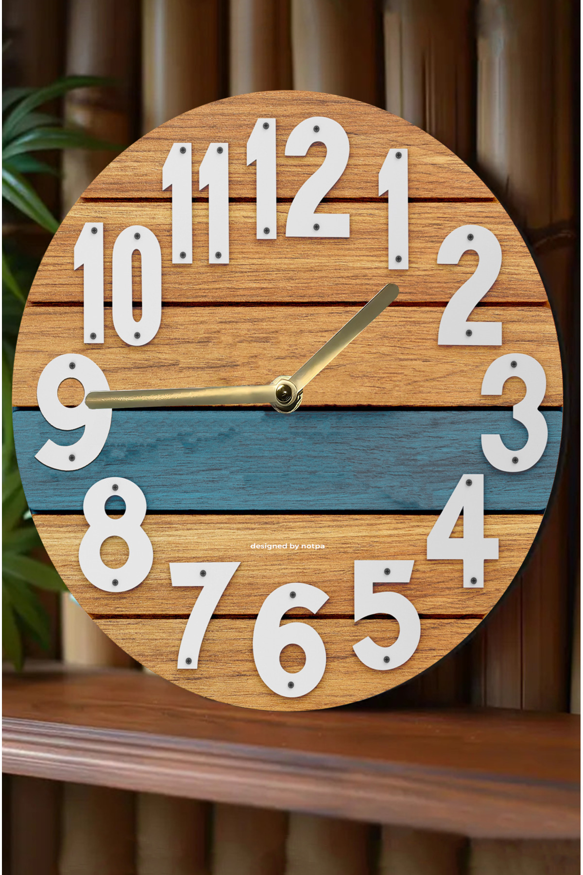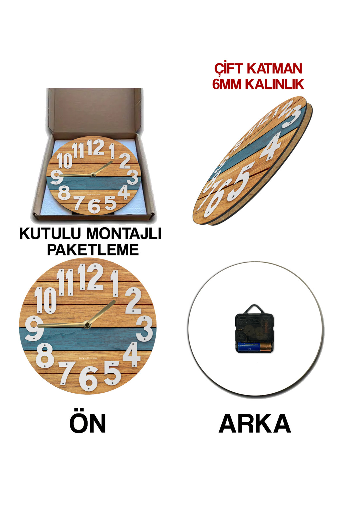 Sessiz Yuvarlak Ahşap Duvar Saati, Kuvars Hareketli Elif Vav Sdw042