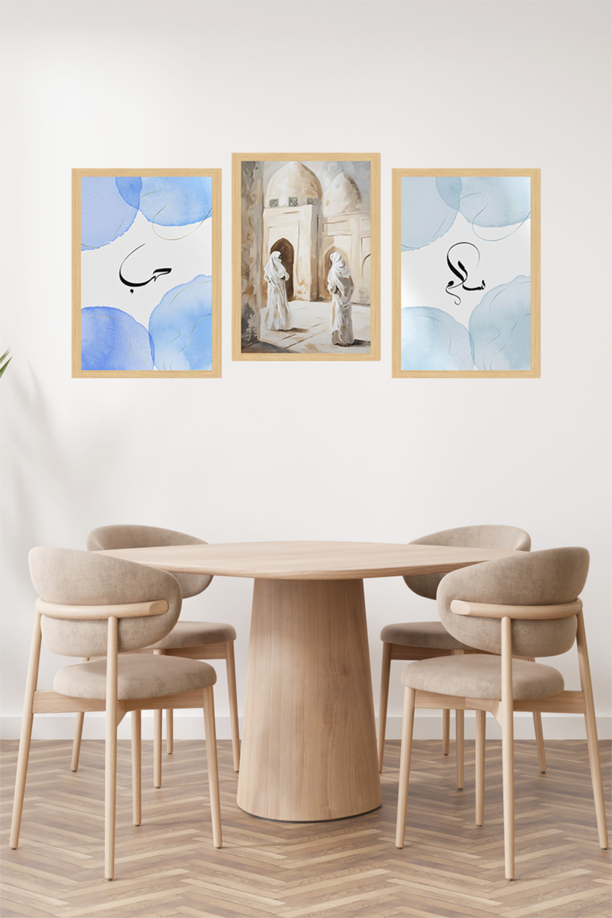 🕌 "Sevgi, Selam ve Gelenek" Temalı 3'lü Dekoratif Tablo Seti – İslami Estetikle Buluşma 🌟 CRVS1219
