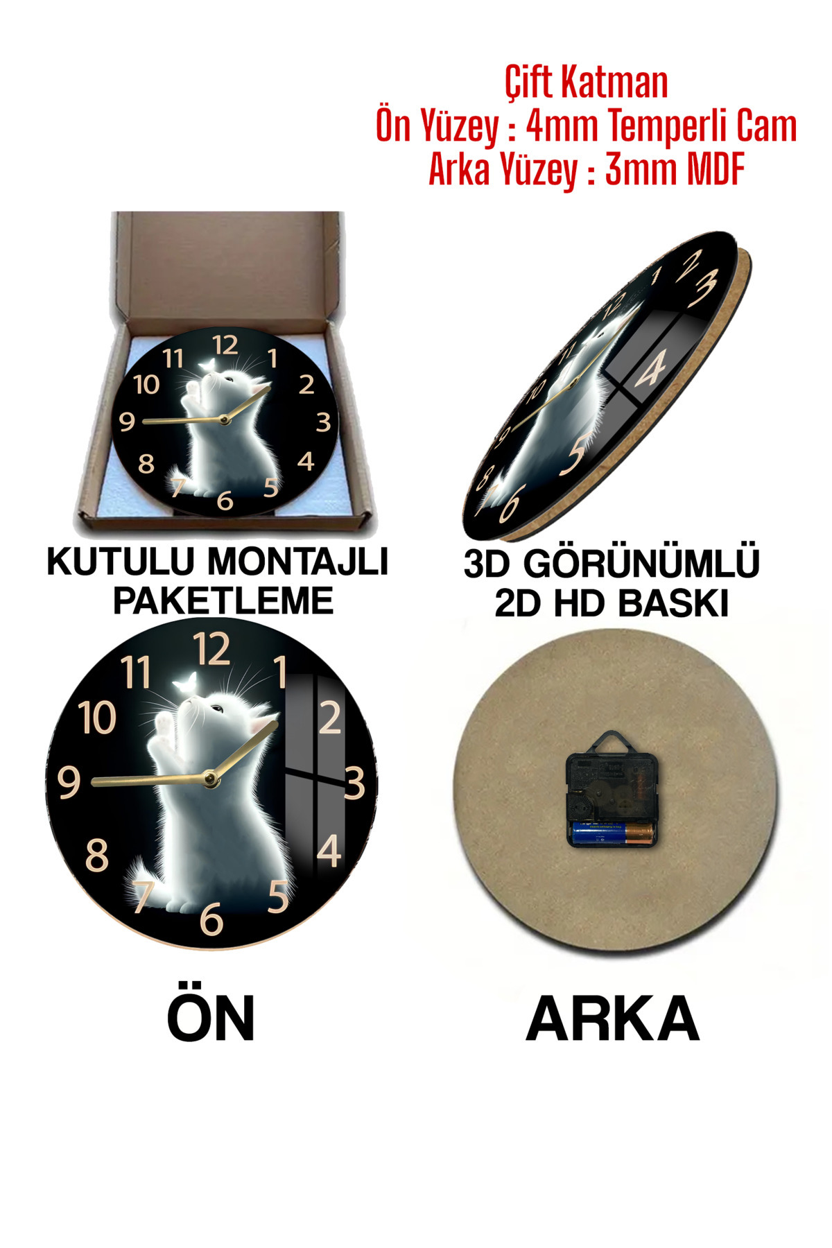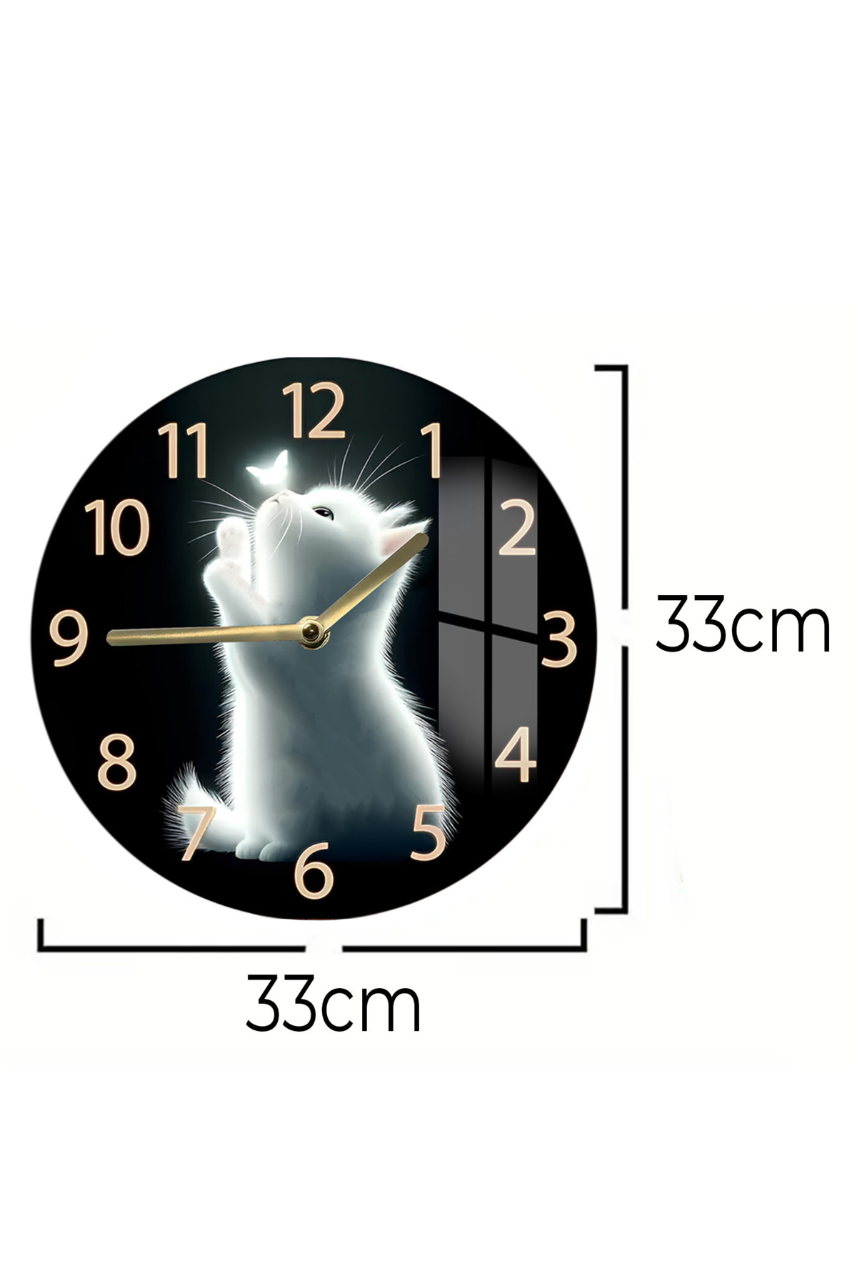 Sevimli Kedi Desenli Temperli Cam Saat – 33x33 cm CSDW317