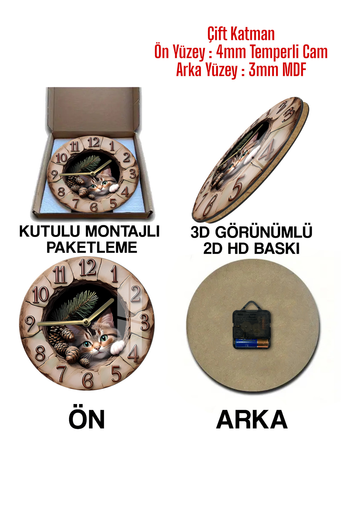 Cam Uv Baski 3D Görünümlü Saatler