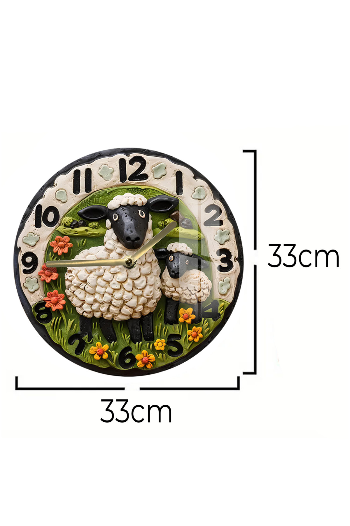 Sevimli Kuzu Tasarımıyla 3D Görünümlü Temperli Cam Saat – 33 cm CSDW016