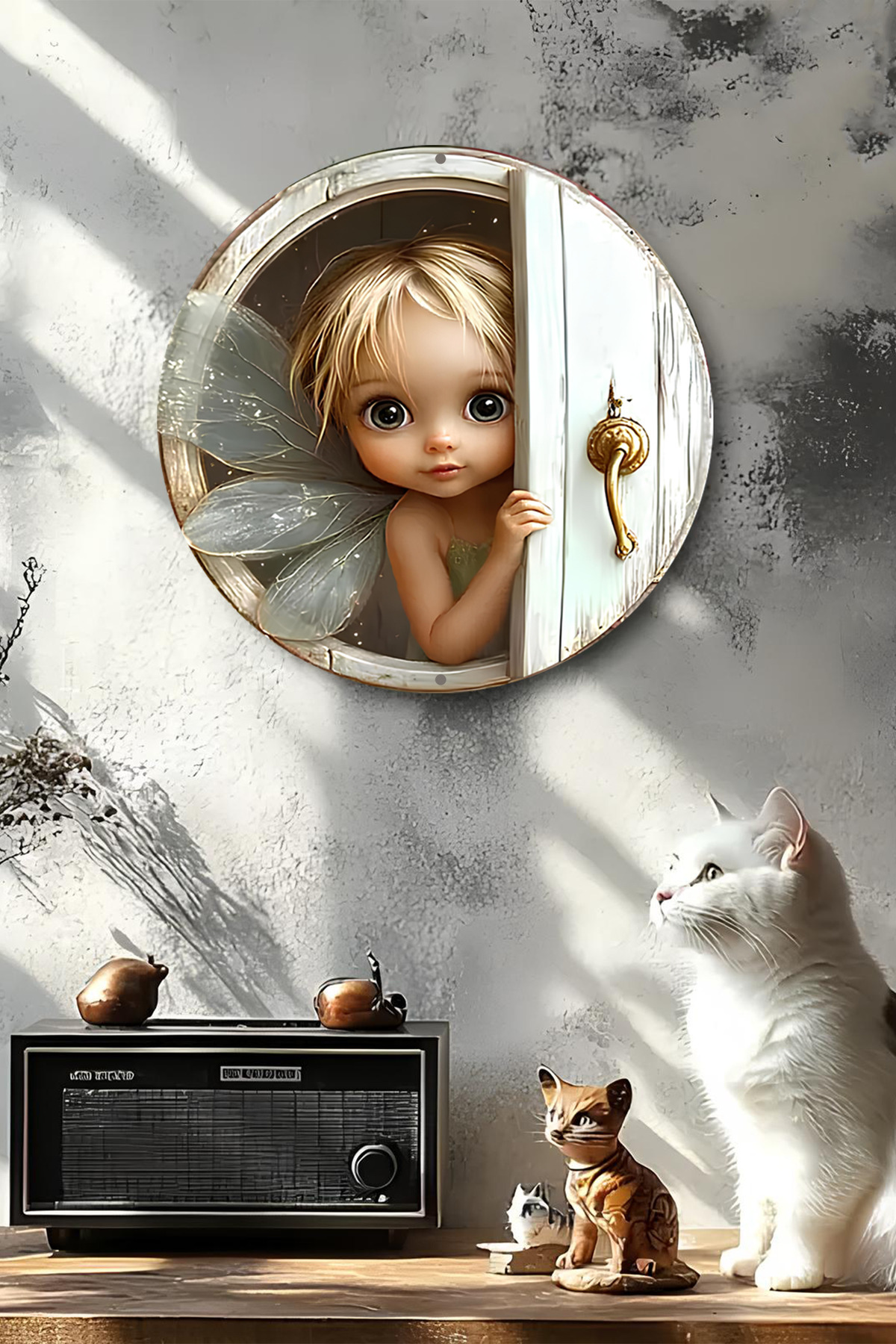 🧚♀️ Sevimli Peri Kapıda Ahşap Duvar Süsü - 20x20 cm 🌟🌸 DT053