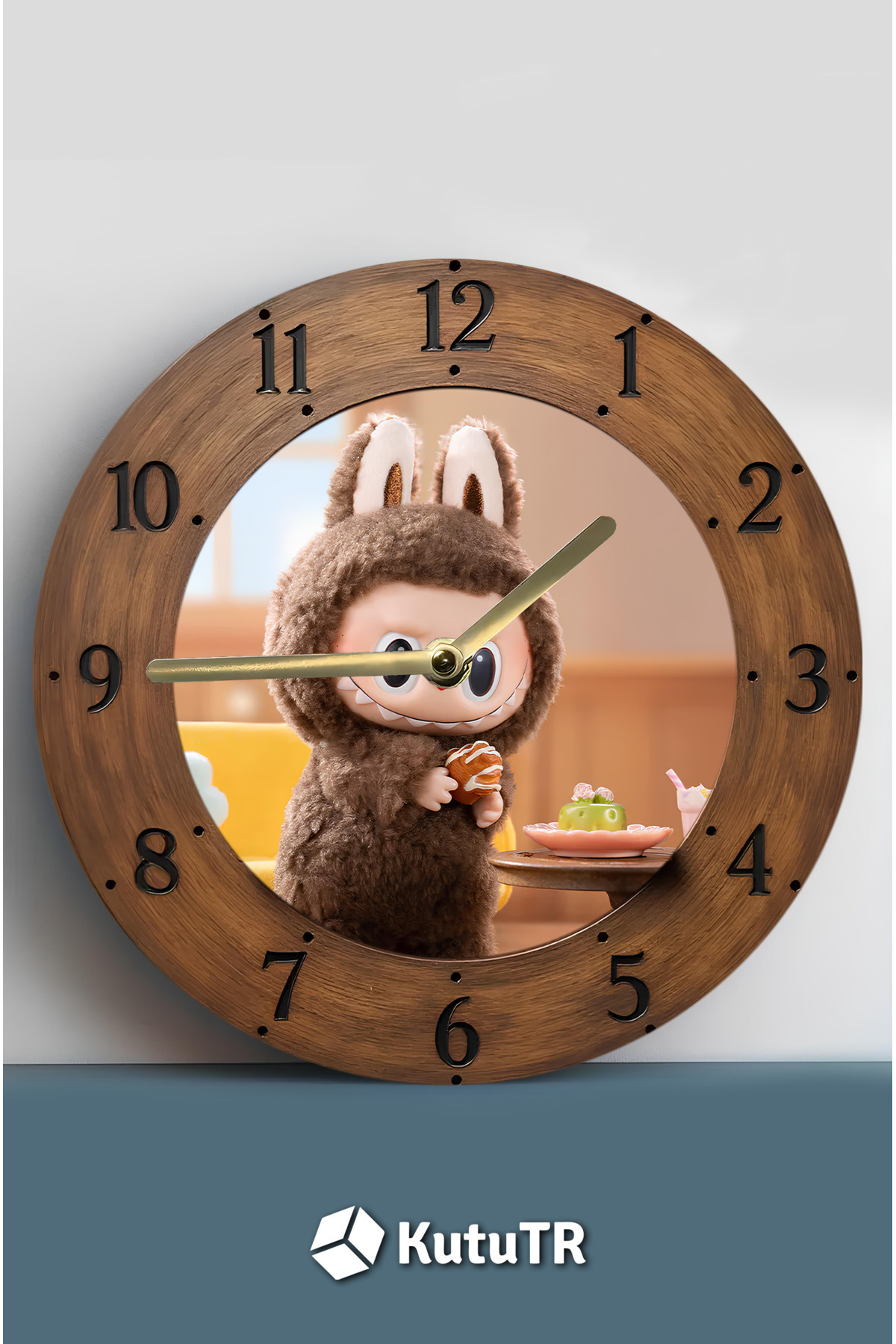 🧸 Sevimli Tavşan Kostümlü Çocuk Temalı 3D Görünümlü MDF Duvar Saati - 33 cm sdw343