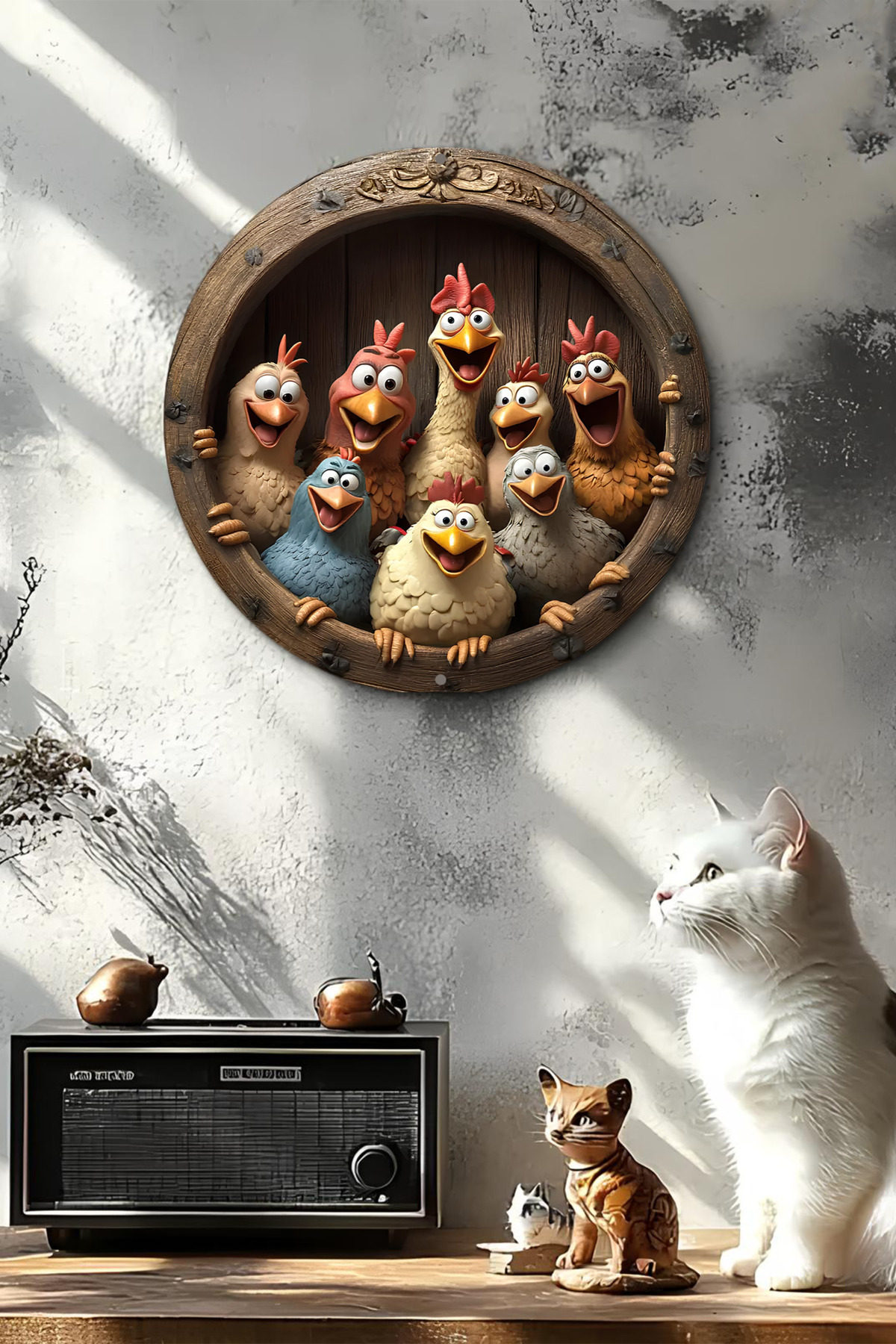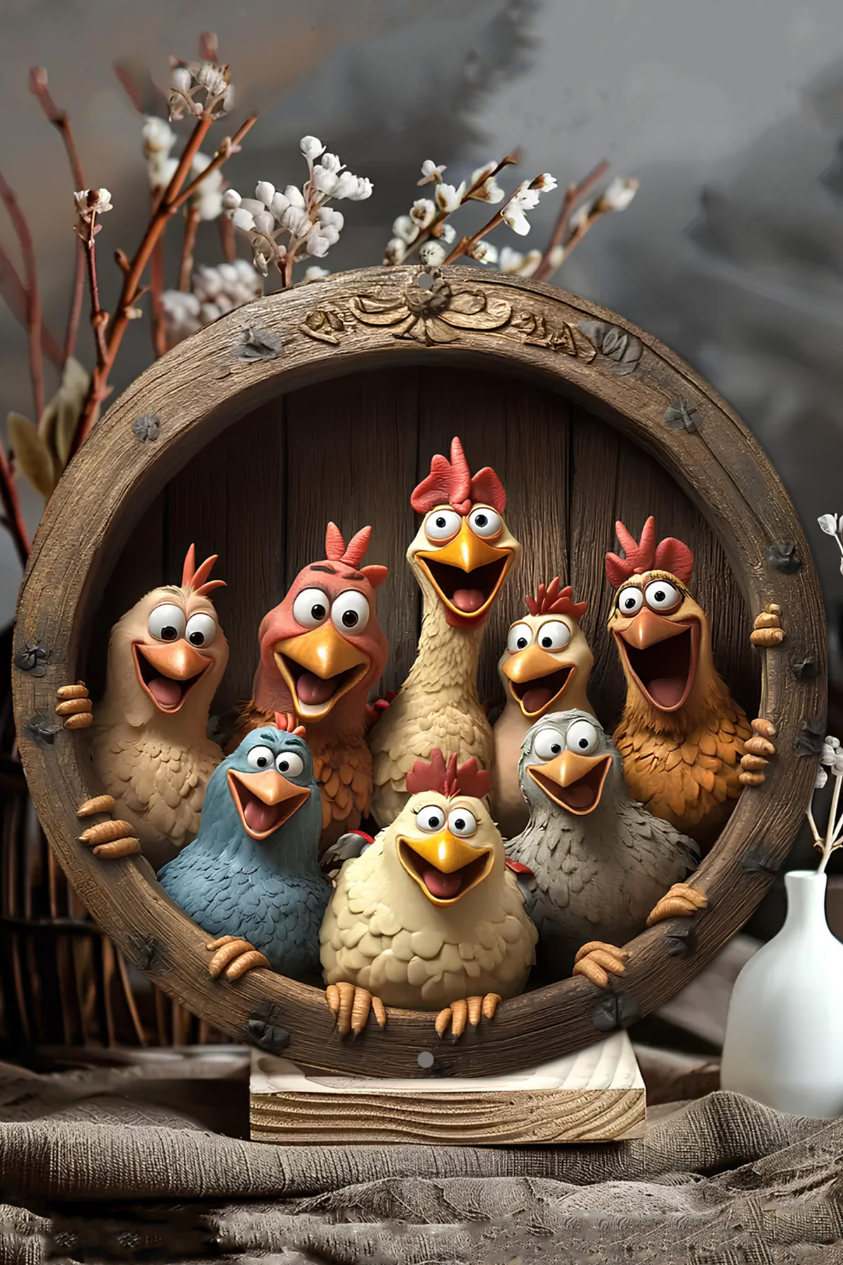 🐔 Sevimli Tavuk Ailesi Duvar Dekoru – 20 cm MDF Askılı Süs DT004