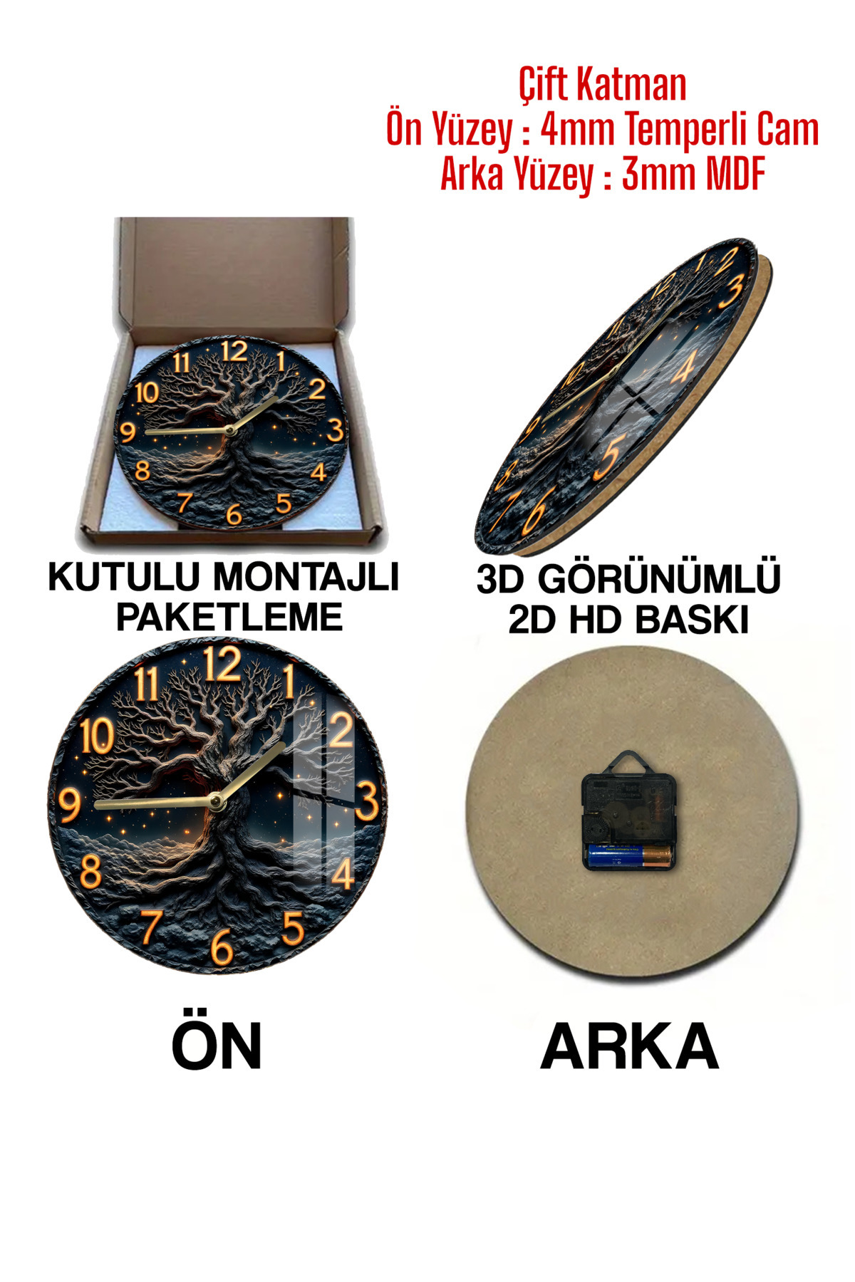 Şık ve Dayanıklı Tasarım! 3D Görünümlü Temperli Cam Saat – 33 cm CSDW288