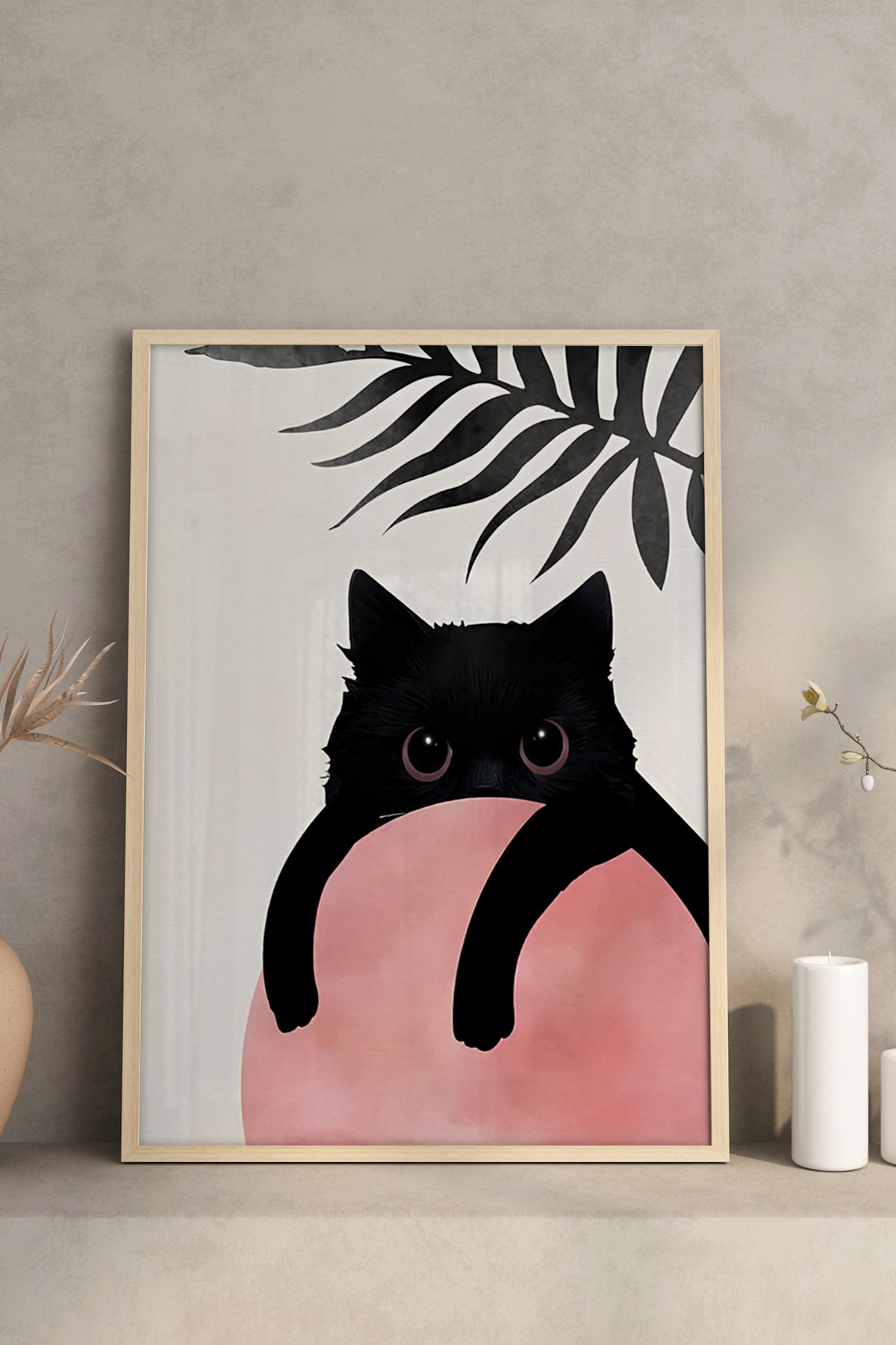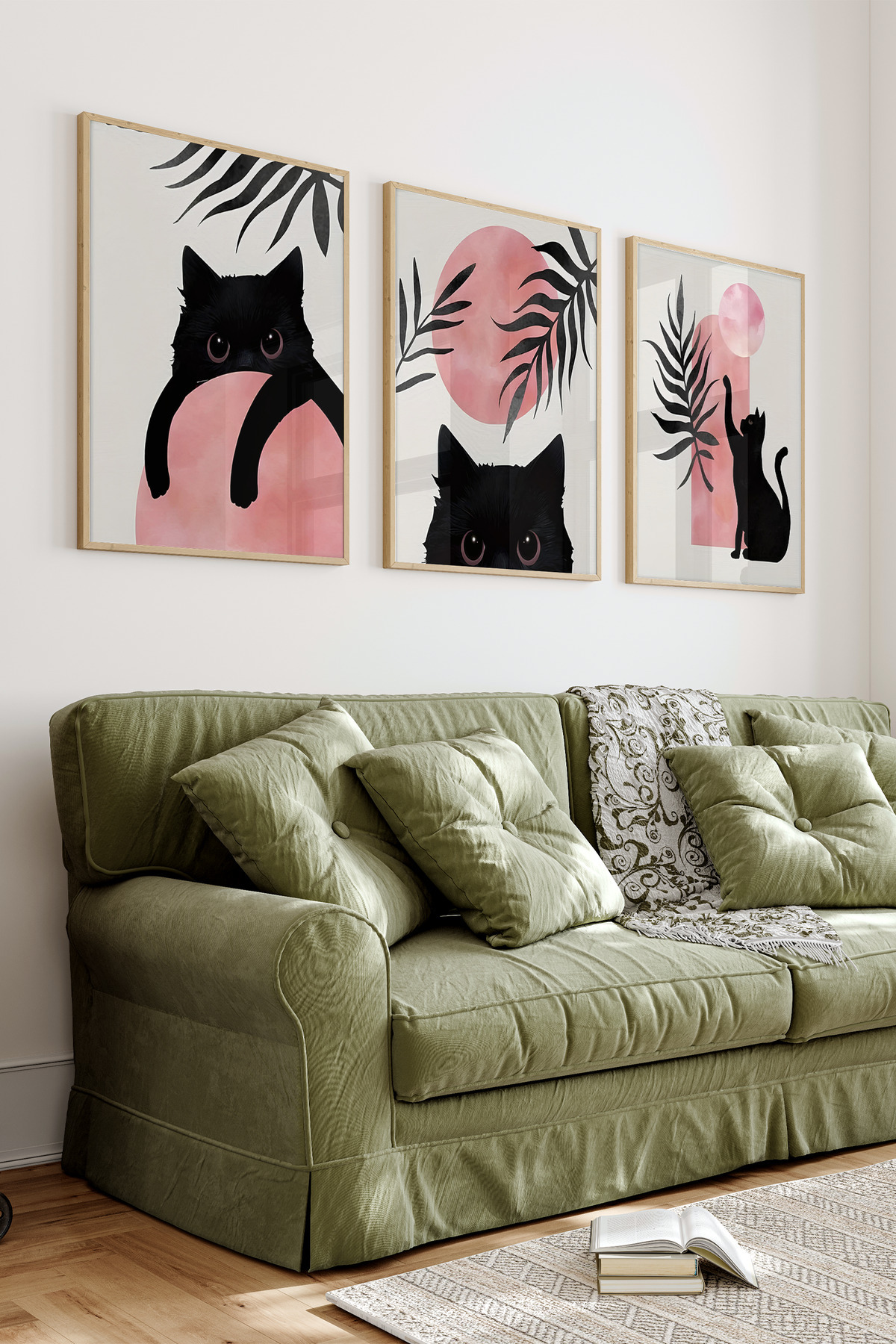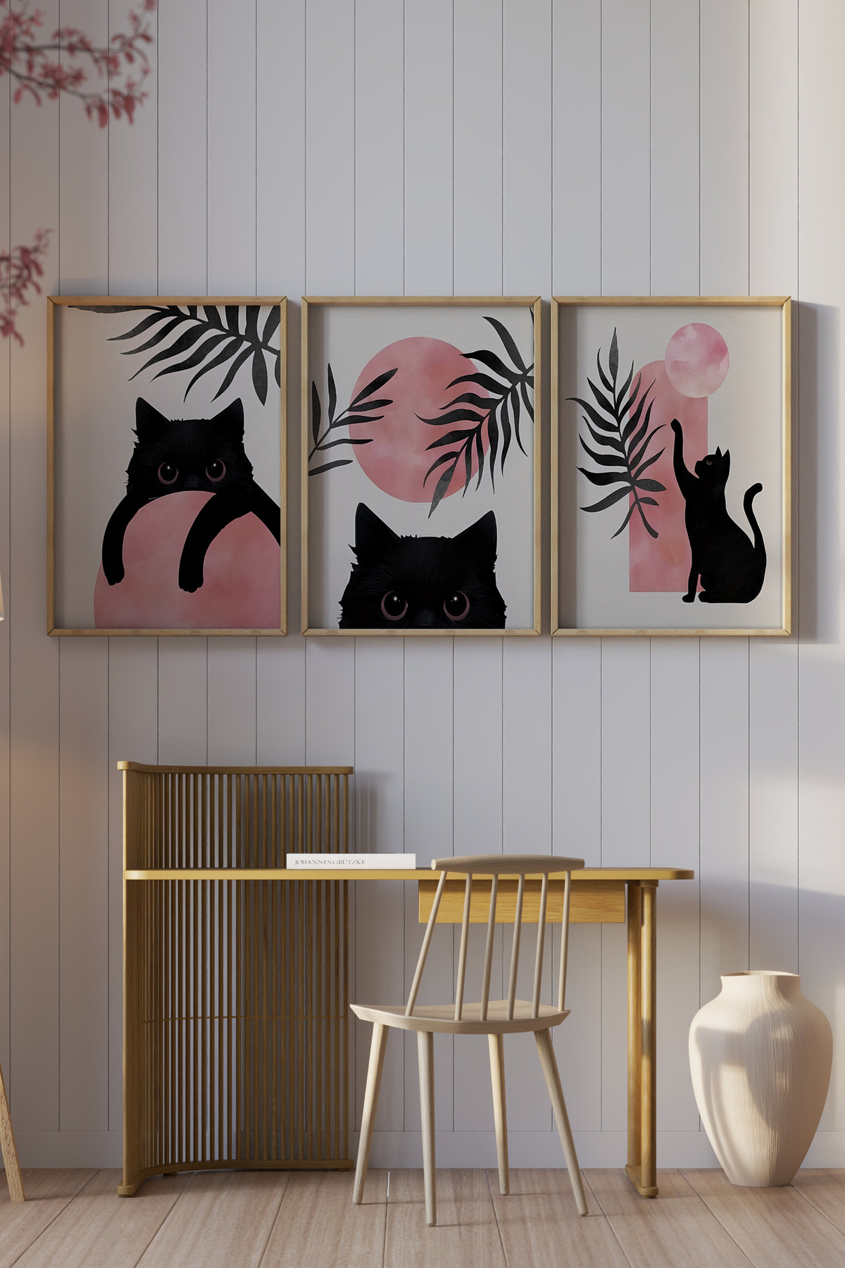 Siyah Kedili Pembe Güneş Temalı 3'lü Çerçeveli Tablo Seti 🏞️ CRV1035