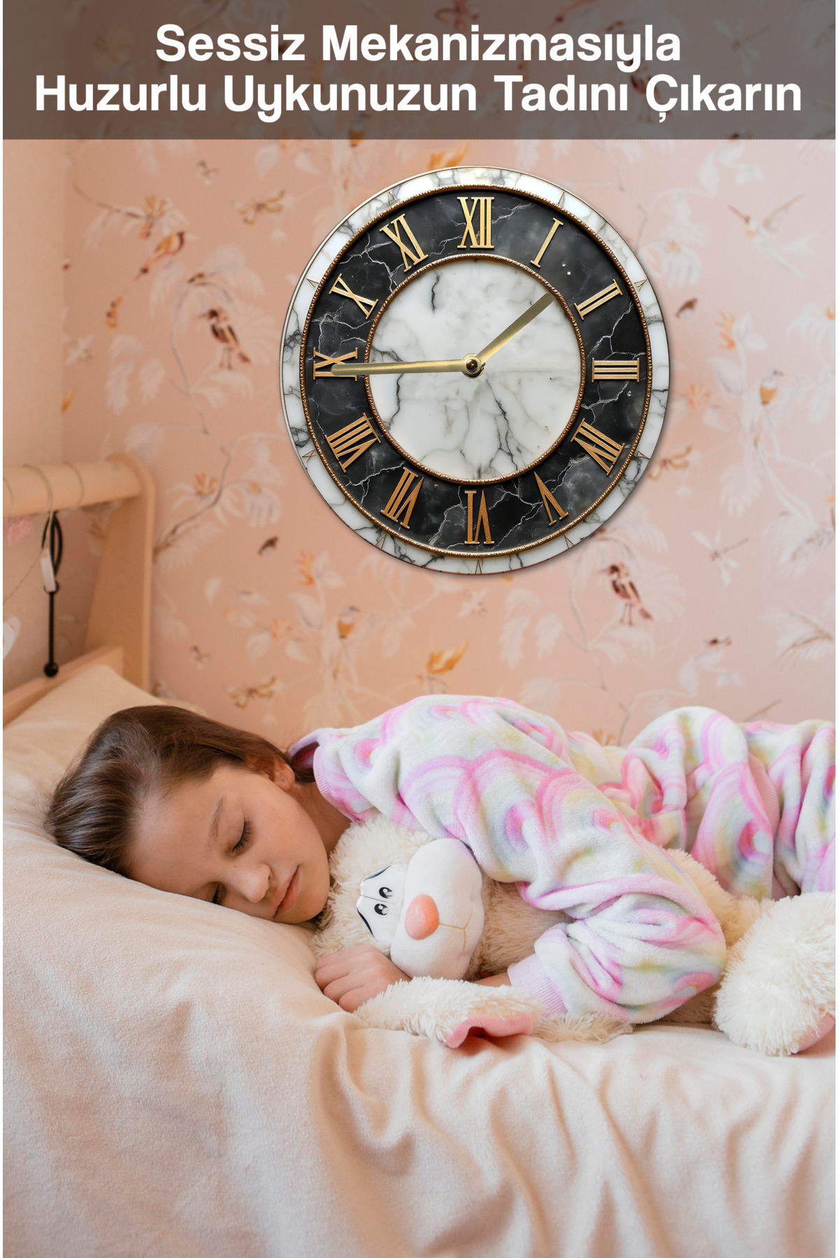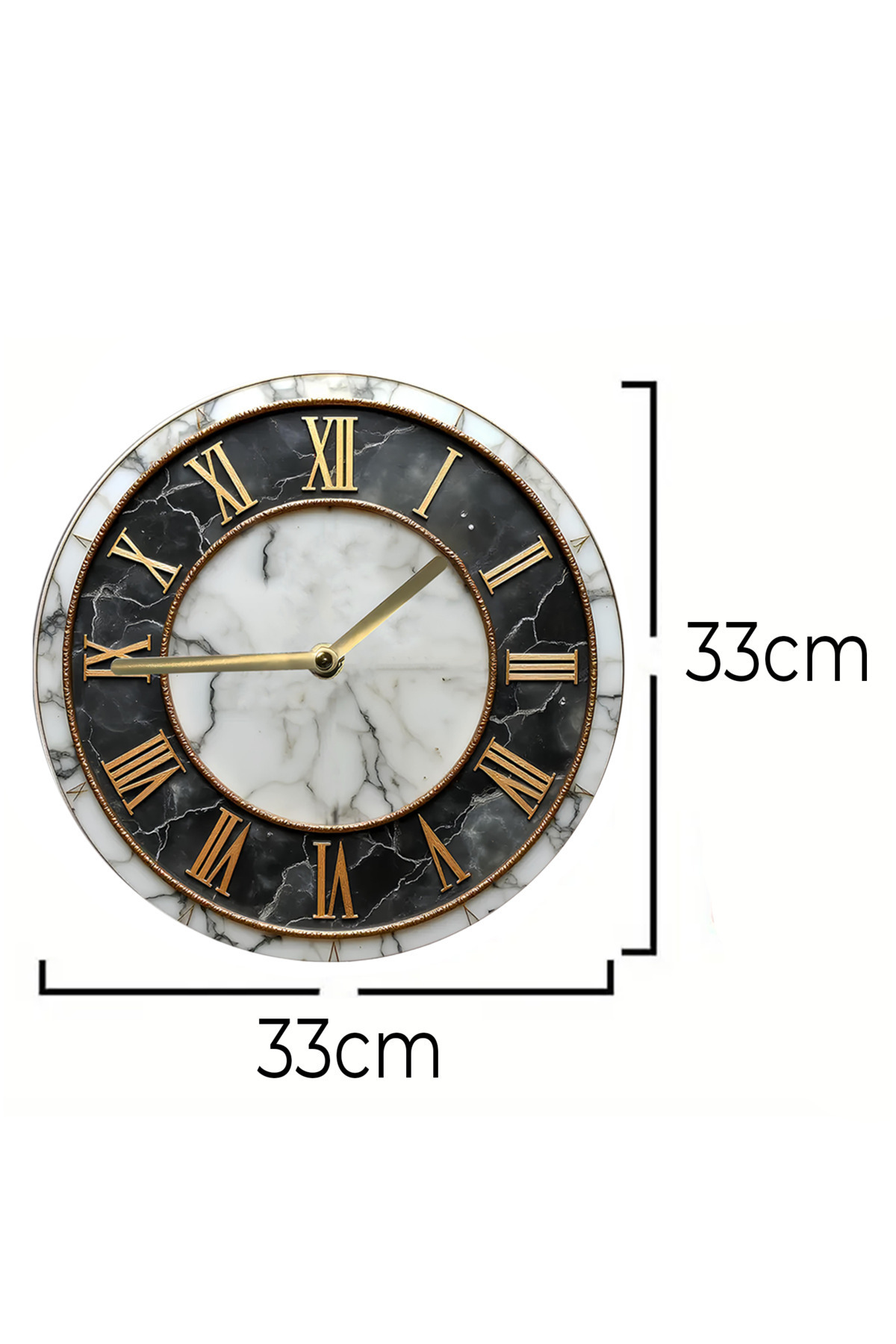 🕰 Siyah Mermer Detaylı Roma Rakamlı MDF Saat – 33 cm sdw319