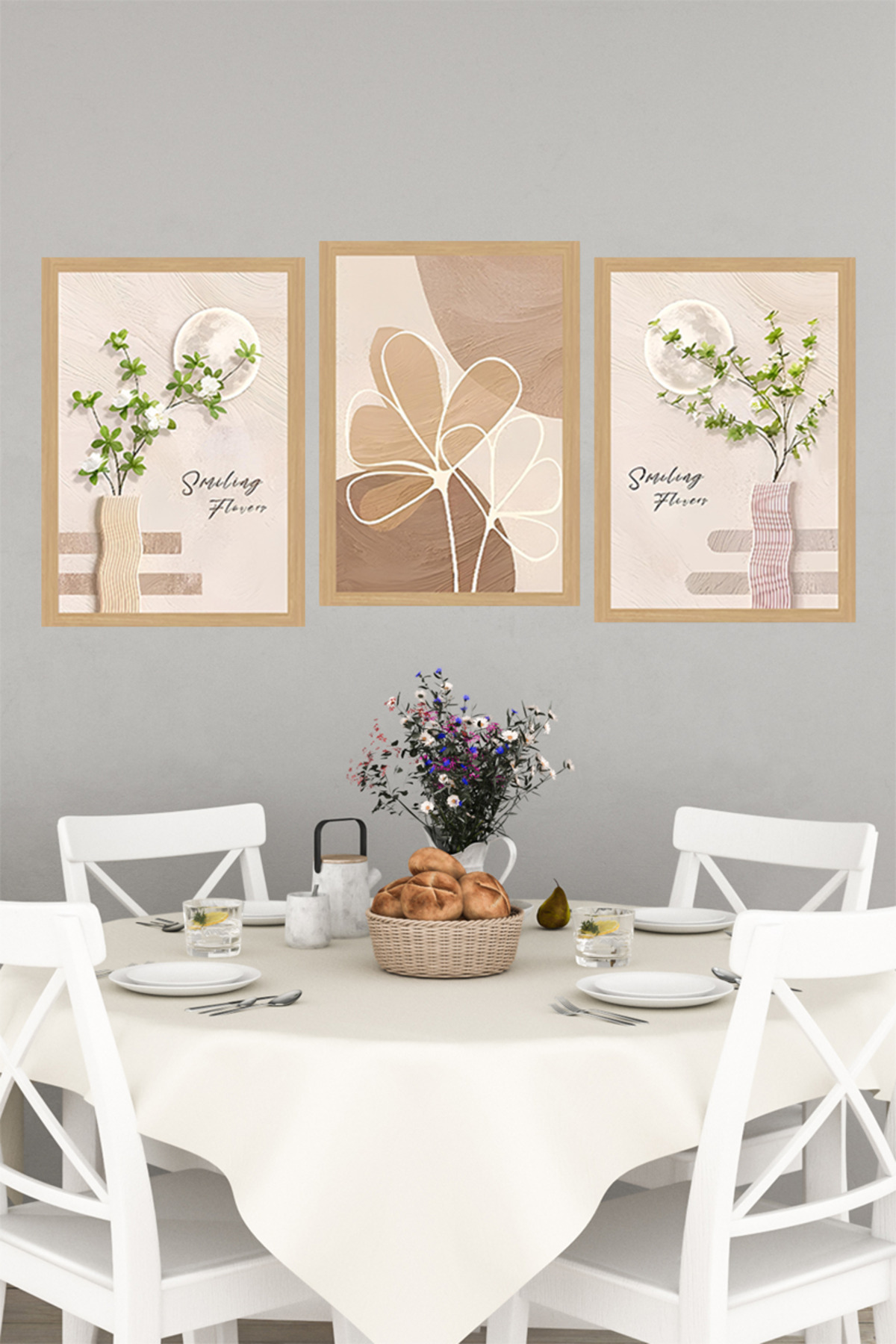 🌿 Smiling Flower Minimalist Tablo Seti – UV Baskılı, Çerçevesiz CRVS1062
