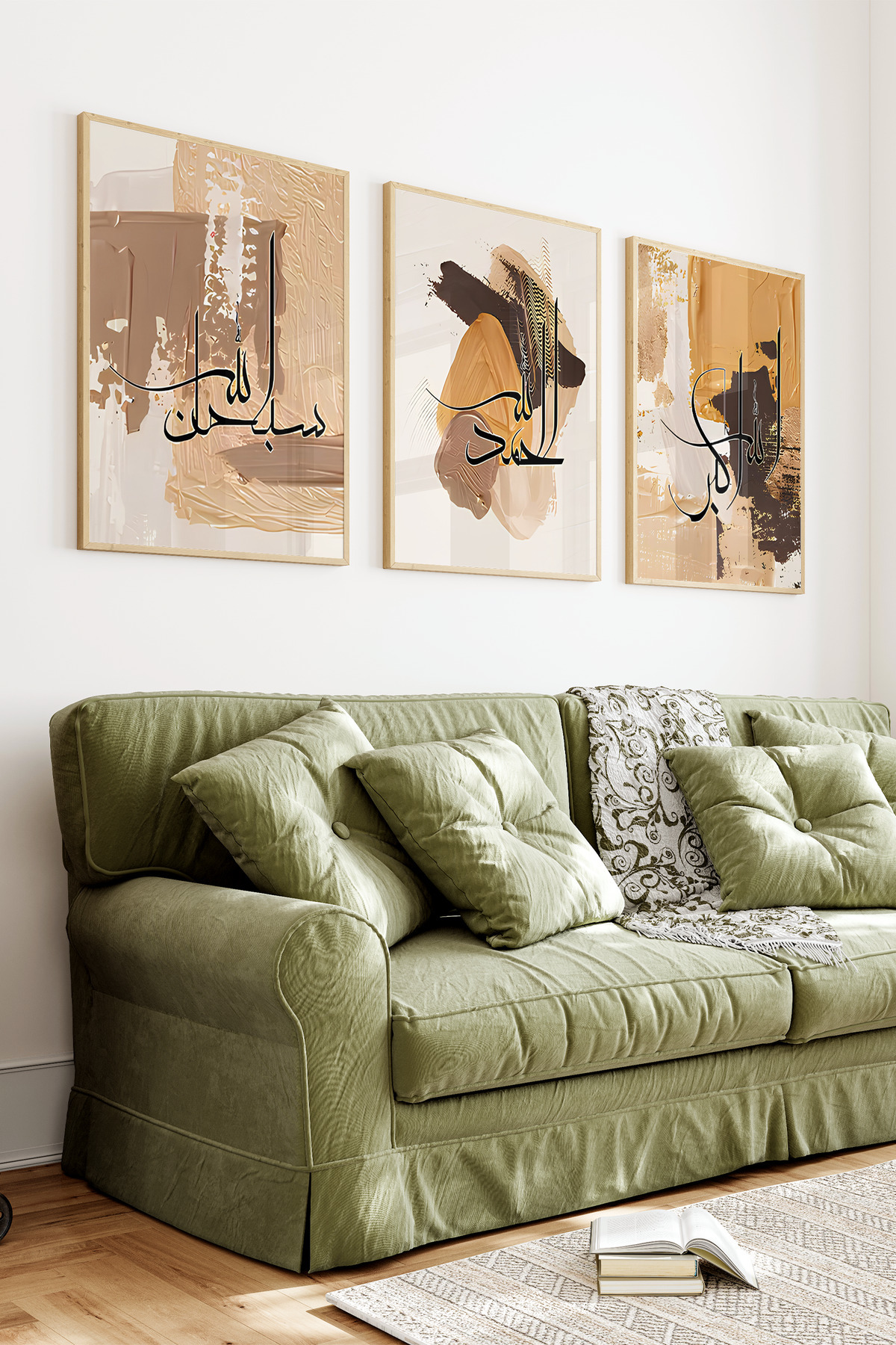 🎨 Soyut Dokunuşlarla Modern Hat Sanatı – 3’lü Çerçeveli Tablo Seti🎨 CRV1090