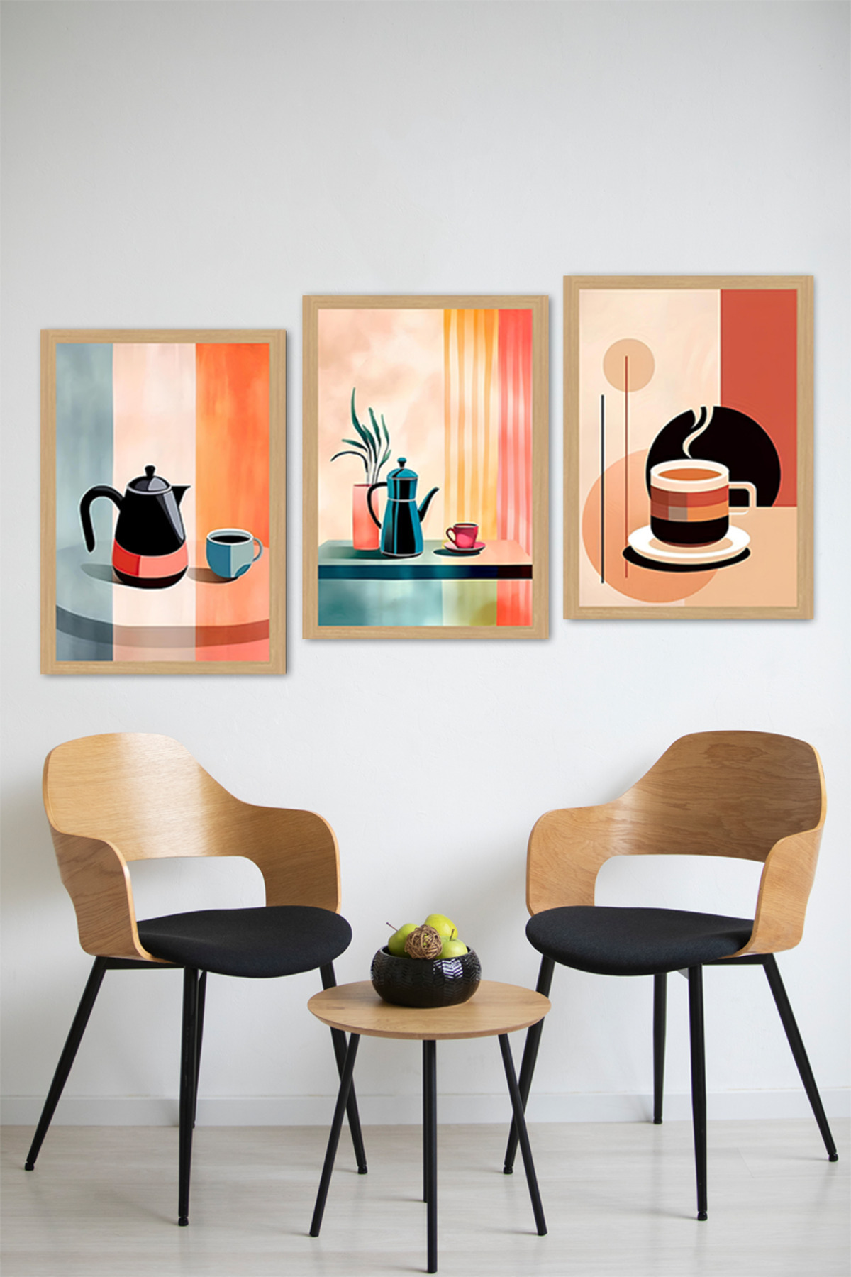 ☕ Soyut Renk Bloklu Kahve Temalı 3'lü Çerçeve Görünümlü Tablo Seti CRVS1009
