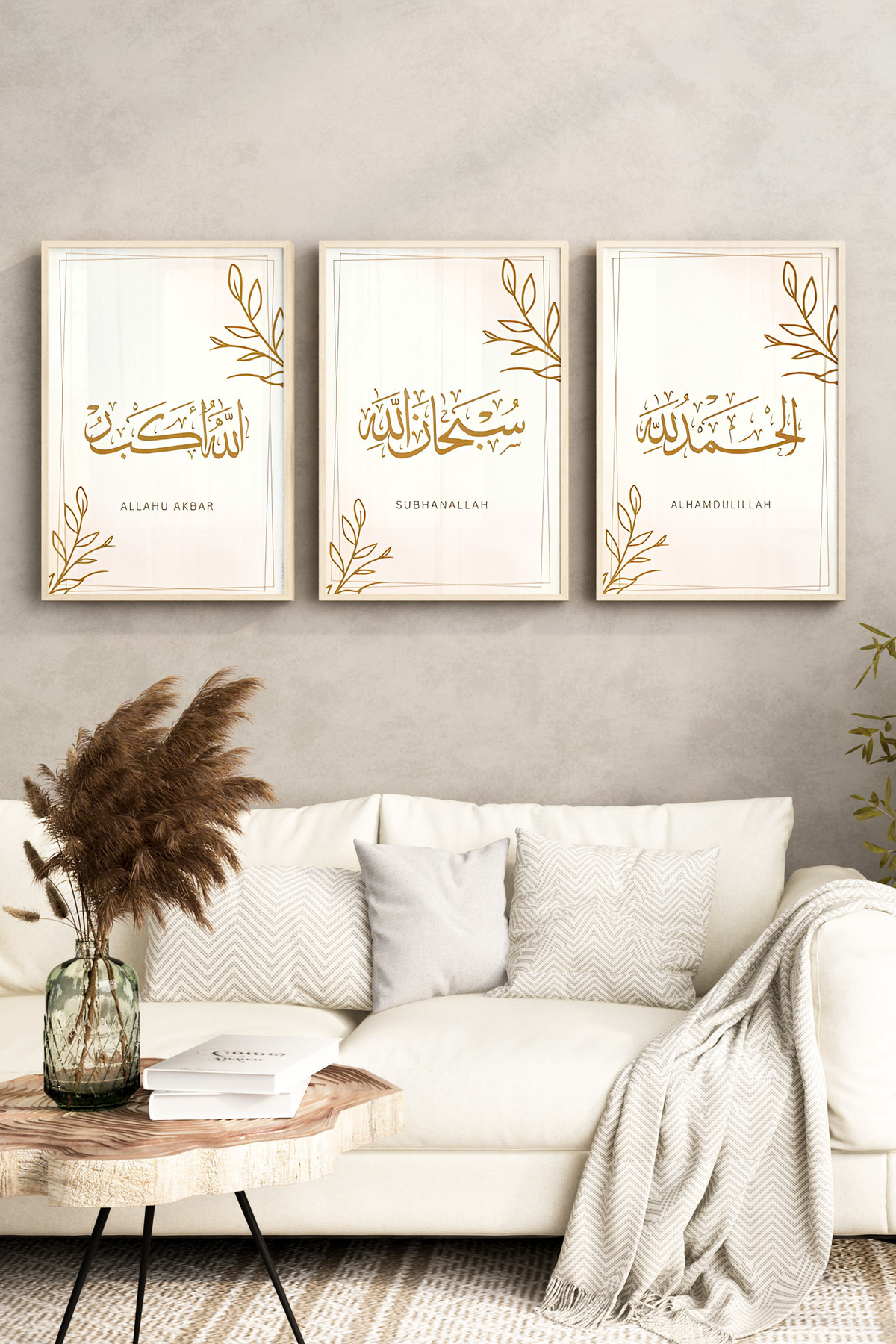 🖼️ Subhanallah – Alhamdulillah – Allahu Ekber Yazılı 3’lü Çerçeveli Tablo Seti 🌿🌸 CRV1234