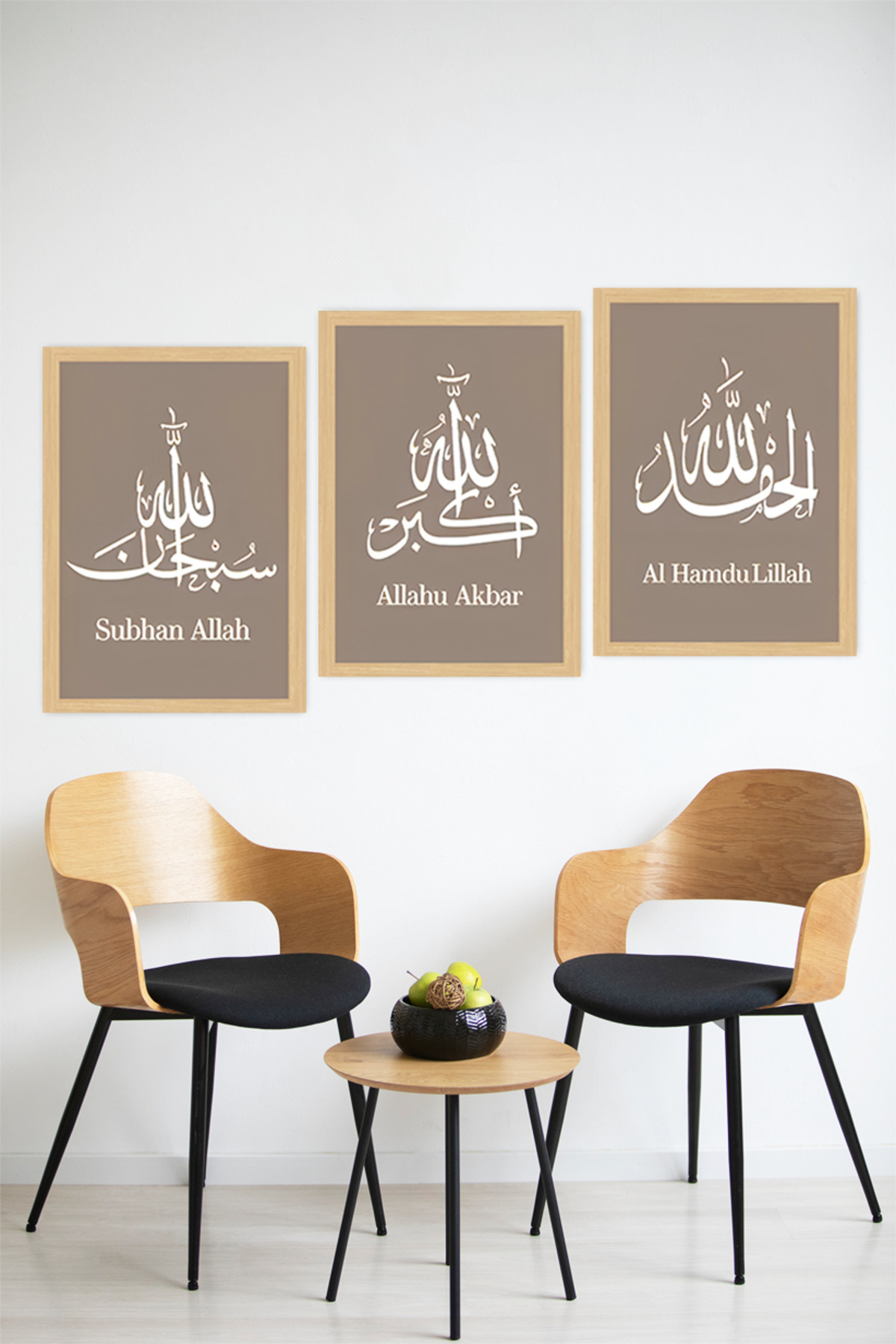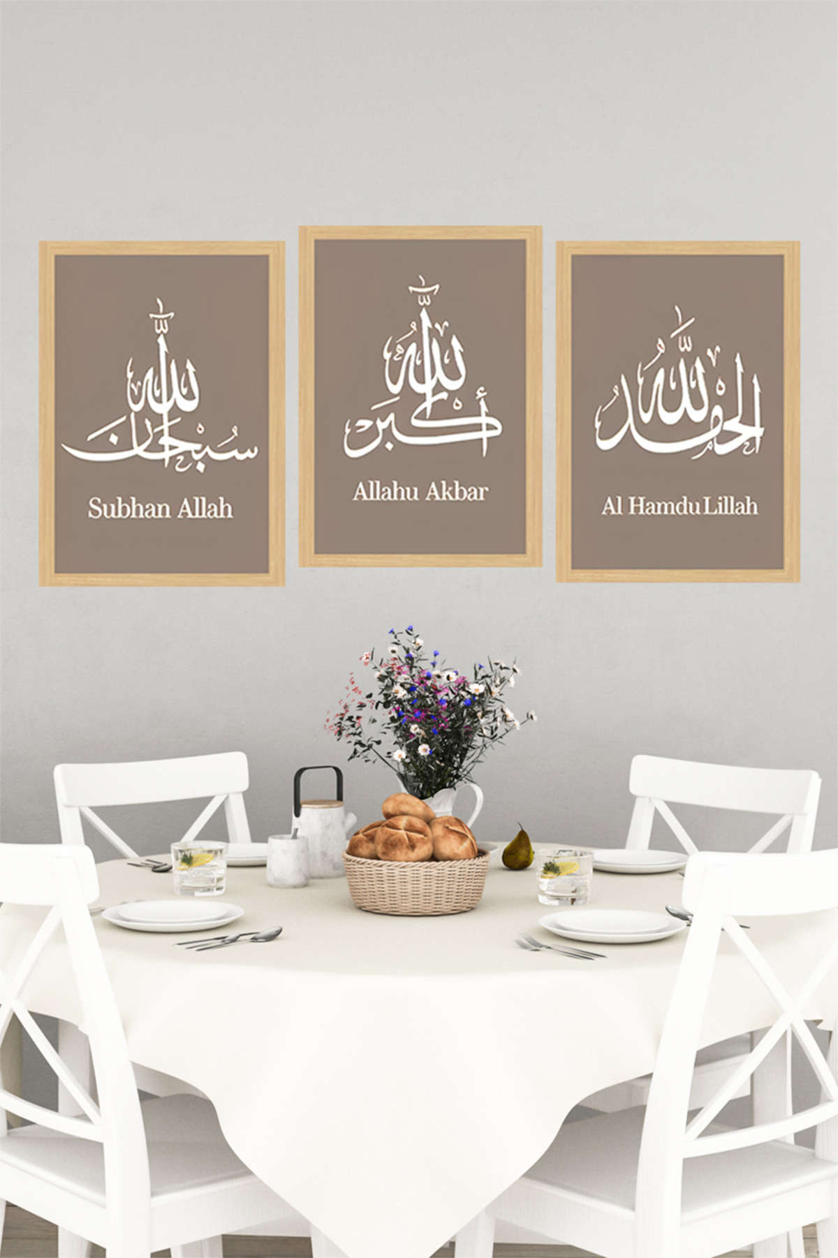 🖼️ "Subhanallah, Elhamdülillah, Allahu Ekber" Yazılı 3’lü Çerçeve Görünümlü Tablo Seti🌙 CRVS1241