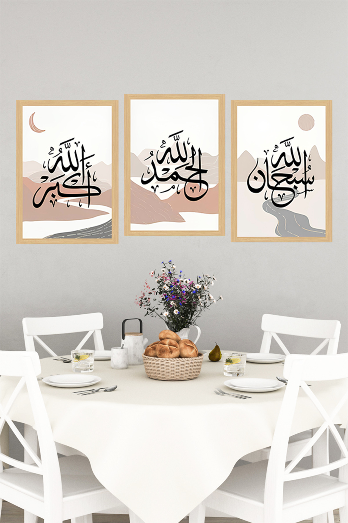 🖼️ Subhanallah • Elhamdulillah • Allahu Ekber Yazılı 3’lü Tablo Seti (Çerçeve Efektli)🌟 CRVS1212