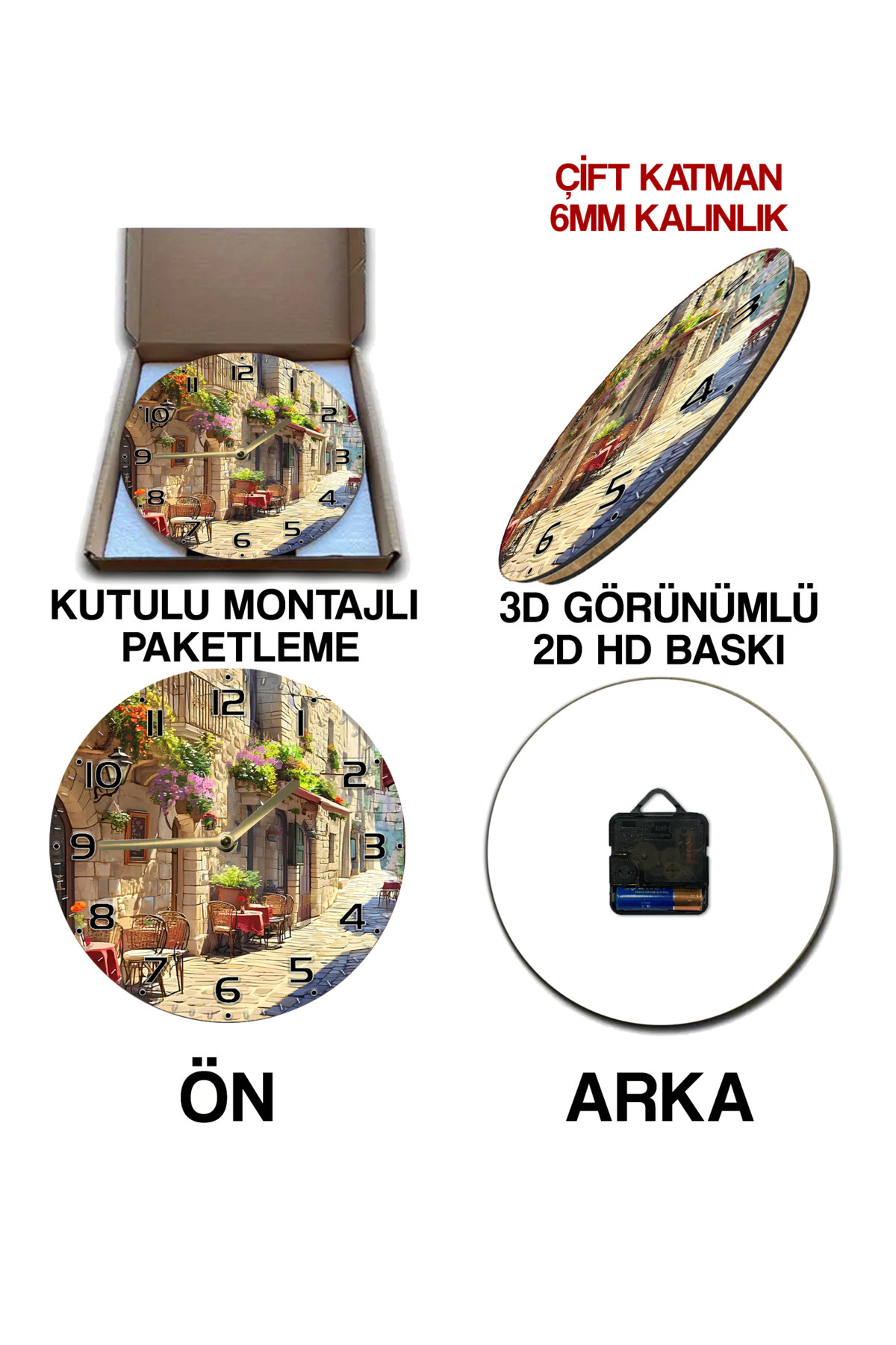 🕰️ Tarihi Sokak Temalı MDF Duvar Saati – 3D Görünümlü 2D HD Baskı SDW337